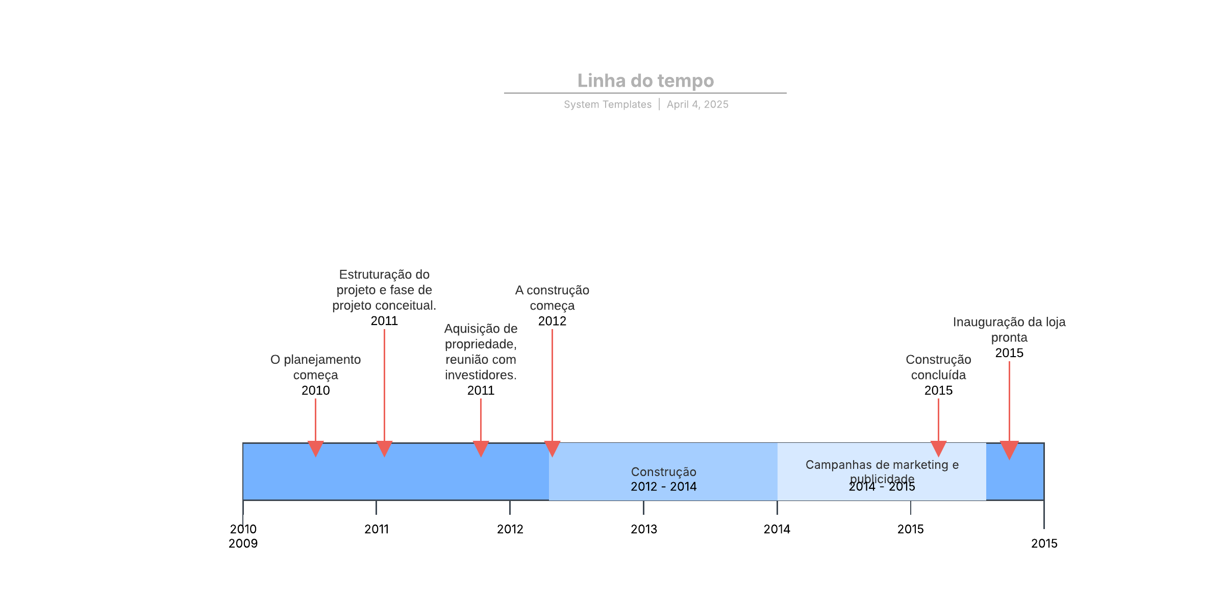 Abra este template para exibir um exemplo detalhado de um diagrama de linha do tempo, personalizável de acordo com o seu caso de uso.