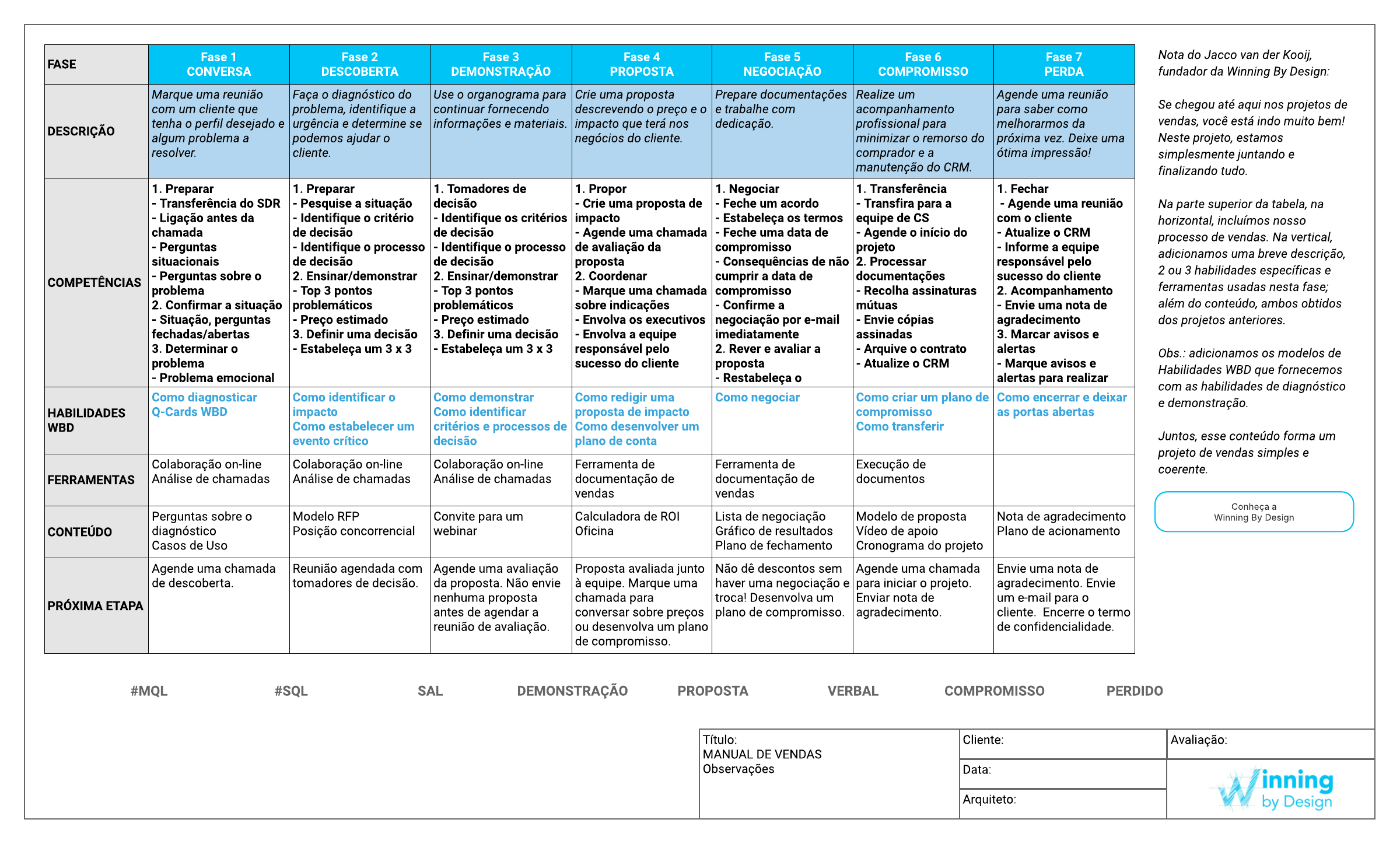 - Reúne informações obtidas de outros modelos da Winning By Design.