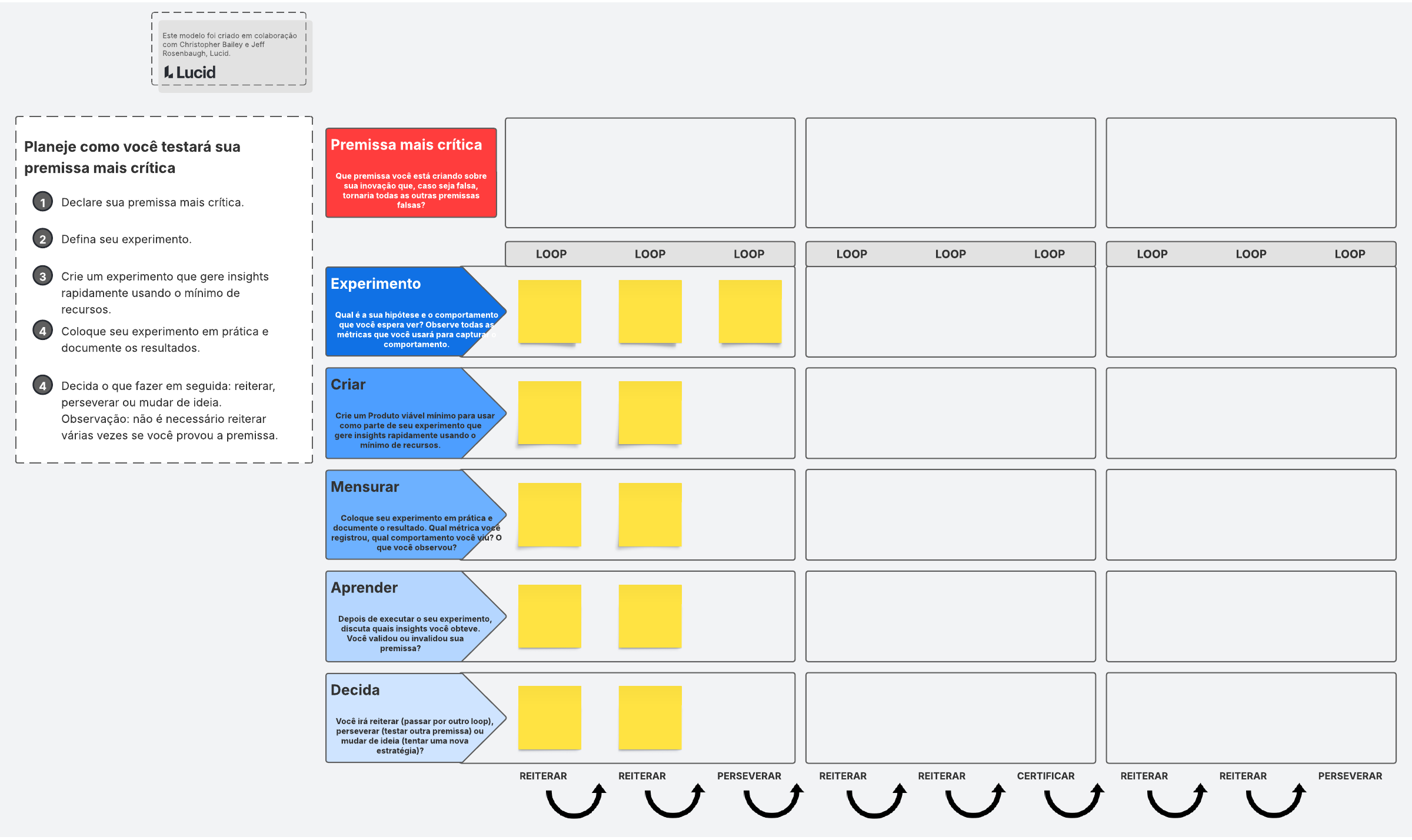 Teste e valide sua premissa mais crítica com este mapa de experimentos.