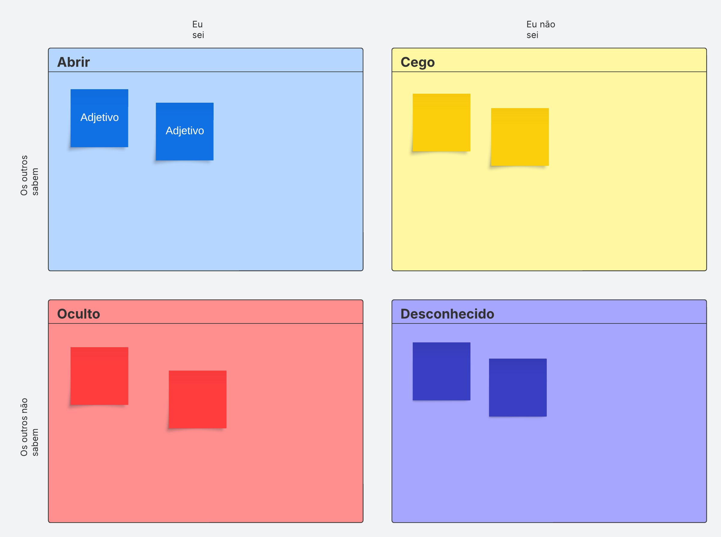 A Janela de Johari ajuda a melhorar suas relações pessoais e interpessoais. Explore seus comportamentos e traços de personalidade e identifique-os como aberto, cego, oculto e desconhecido para melhorar sua autoconsciência e seu trabalho em equipe.
