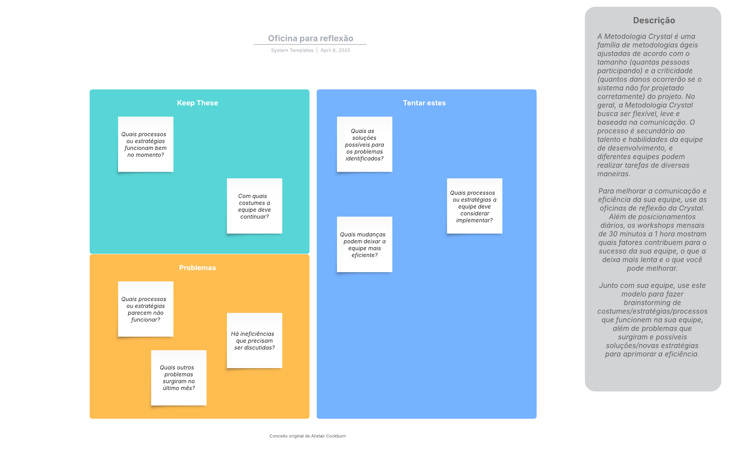 Abra este modelo e adicione conteúdo para personalizar o diagrama de workshop para reflexão de acordo com seu caso de uso.
