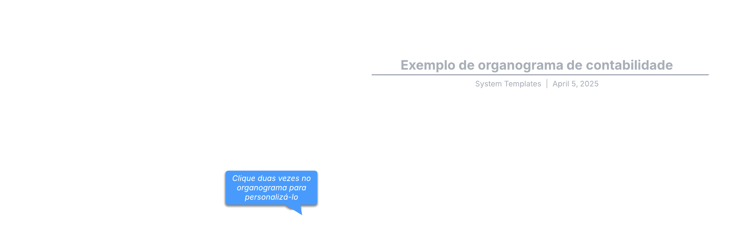 Abra este modelo para exibir um exemplo detalhado de um organograma de contabilidade, personalizável de acordo com seu caso de uso.