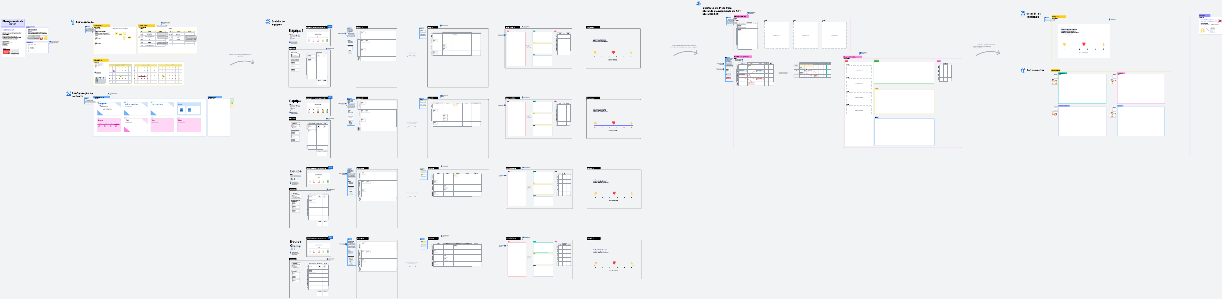 Elimine o trabalho pesado de se preparar para sua próxima sessão de planejamento PI aproveitando o modelo de planejamento PI gratuito da Lucid. Esse modelo foi criado para orientar grandes grupos em sessões bem-sucedidas de planejamento PI usando a Lucid.