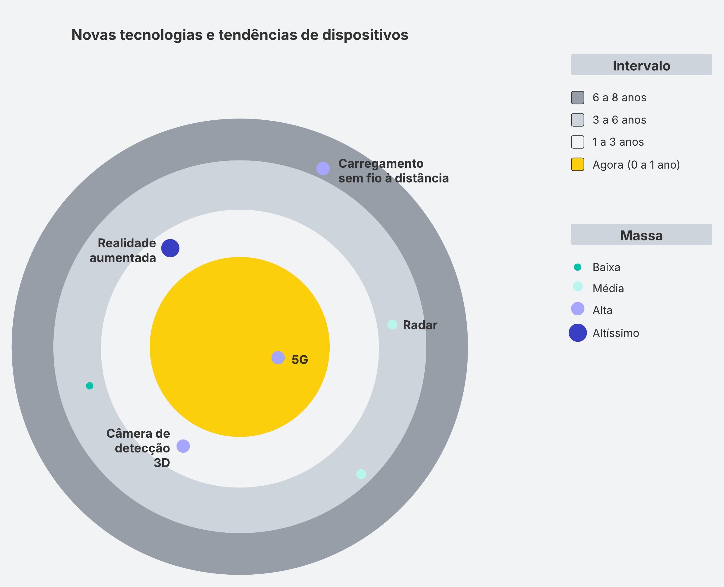 Use este modelo de radar de impacto para visualizar os avanços e as tendências de uma determinada tecnologia.