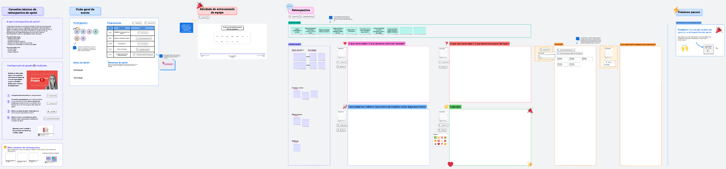Use este modelo de retrospectiva ao concluir o sprint de sua equipe. Peça aos membros da equipe para refletir sobre o projeto e contribuir com opiniões para melhorar os processos e futuros sprints.