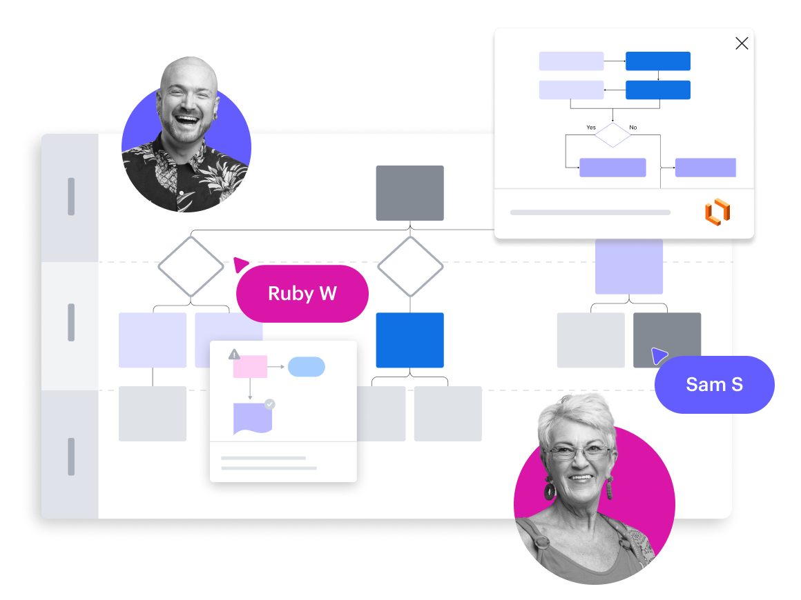 Com os diagramas e fluxogramas, visualize os fluxos de trabalho financeiros e crie documentos com base em dados que as partes interessadas podem consultar facilmente.