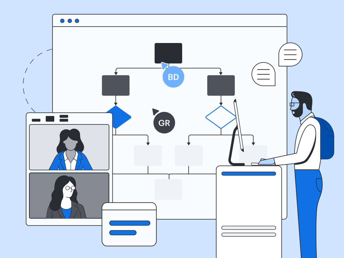 Learn how Lucid enables teams to gather, initiate work, and see progress.
