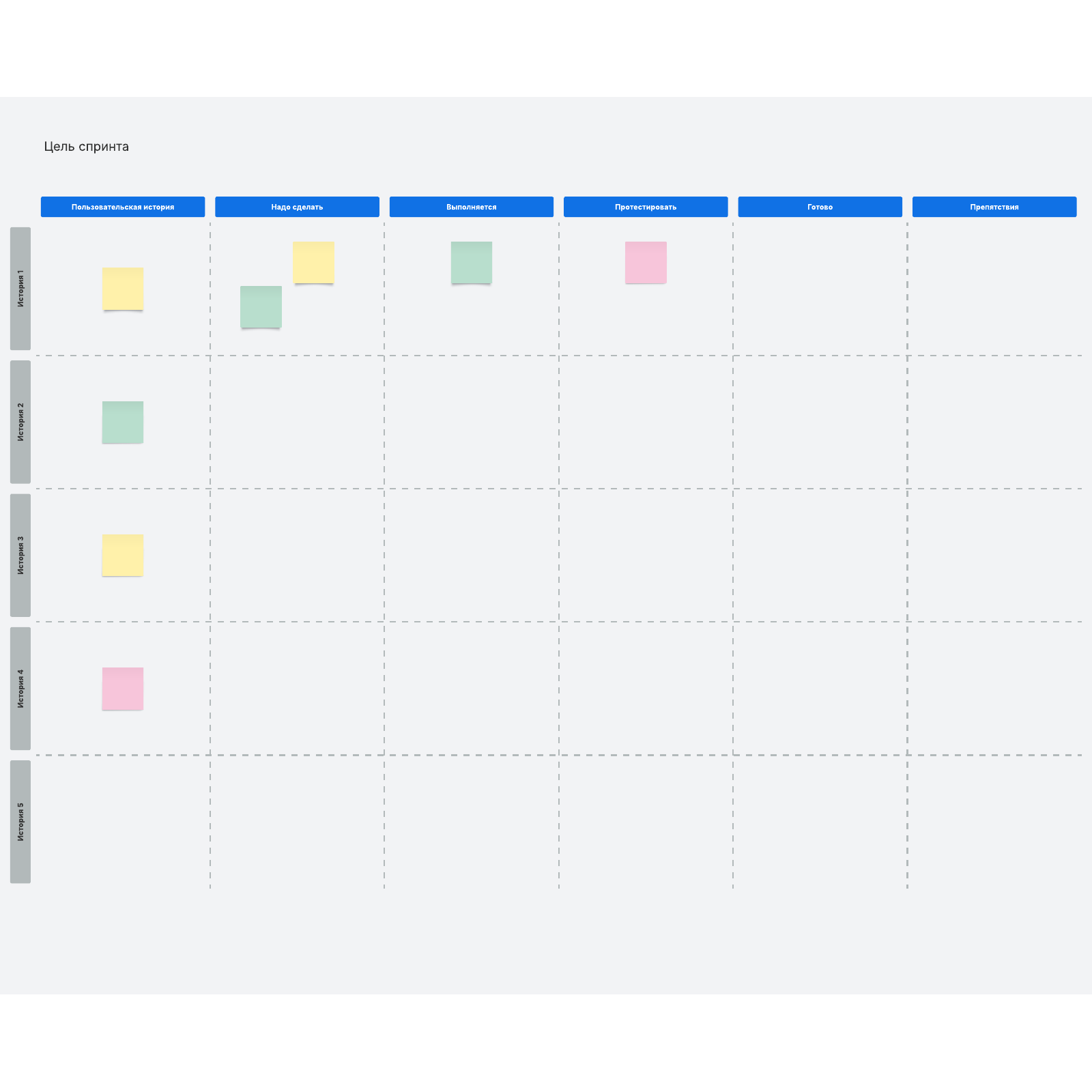 Планировать спринт можно совместно всей командой в режиме реального времени. Задать вопрос или поделиться конструктивной критикой помогут комментарии, @упоминания и встроенный чат. Чтобы сориентироваться на большой доске, пригодится функция отслеживания, а для выделения самых удачных идей предусмотрен набор смайликов.