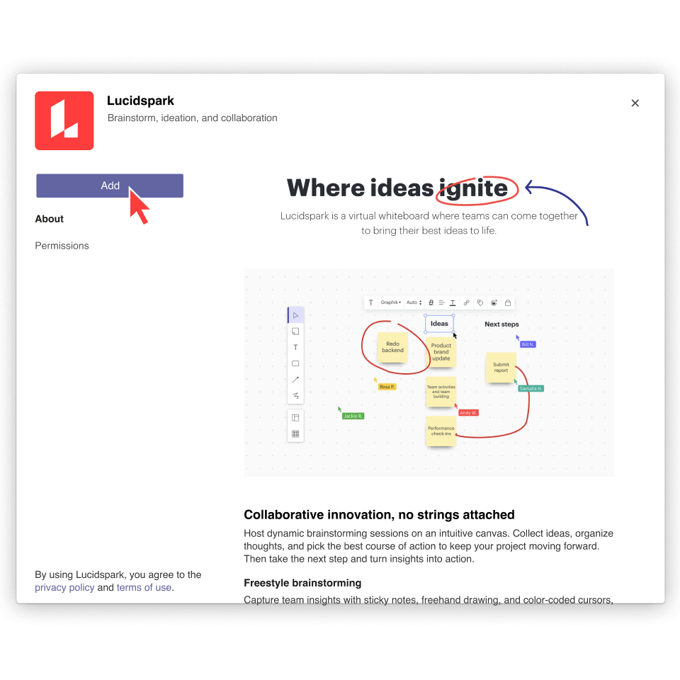 2. Нажмите «Добавить», чтобы включить Lucidspark в число ваших приложений.