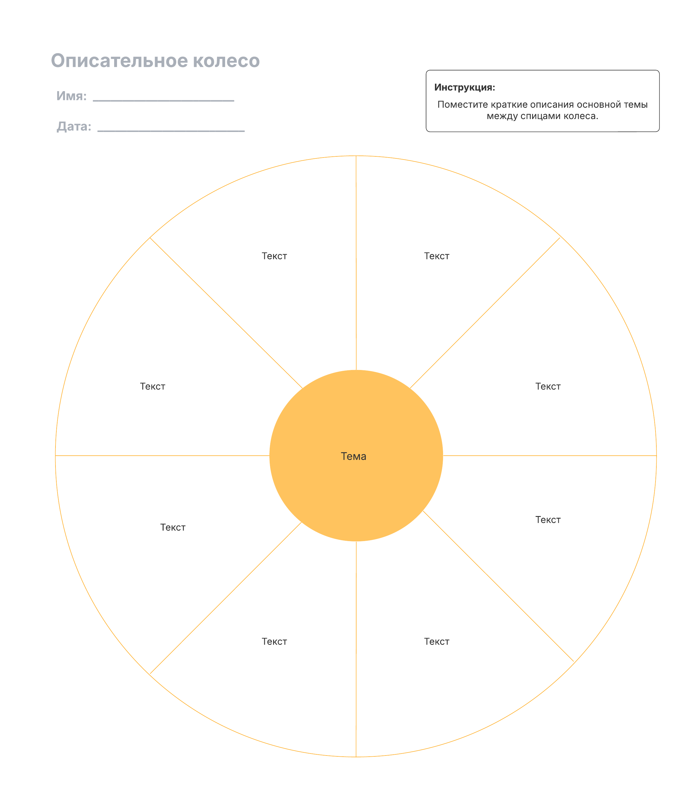 Чтобы подстроить это колесо под свой проект, просто откройте шаблон и внесите необходимую информацию.