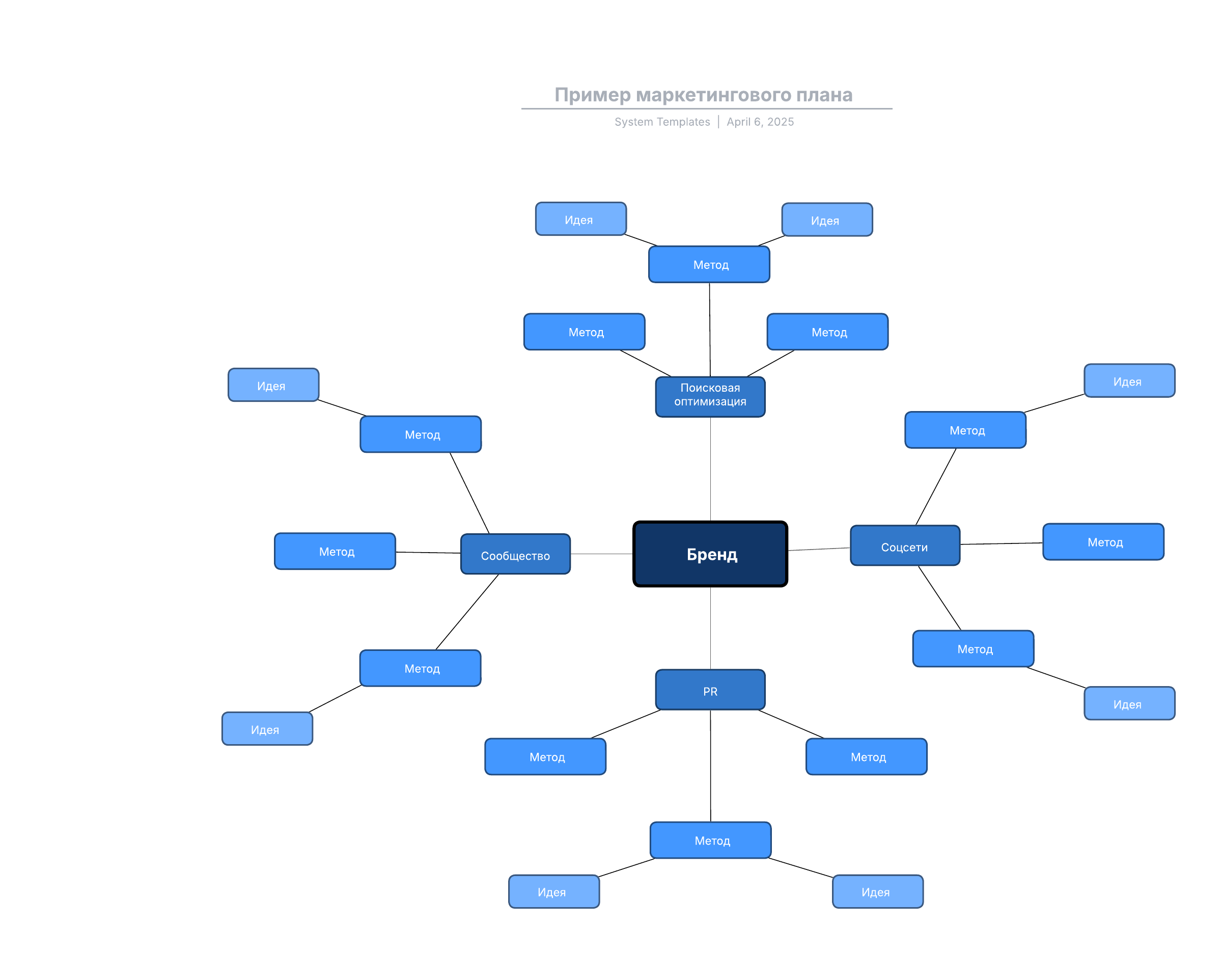 Откройте шаблон, чтобы подробнее рассмотреть наш пример и настроить его под свой проект маркетингового плана.