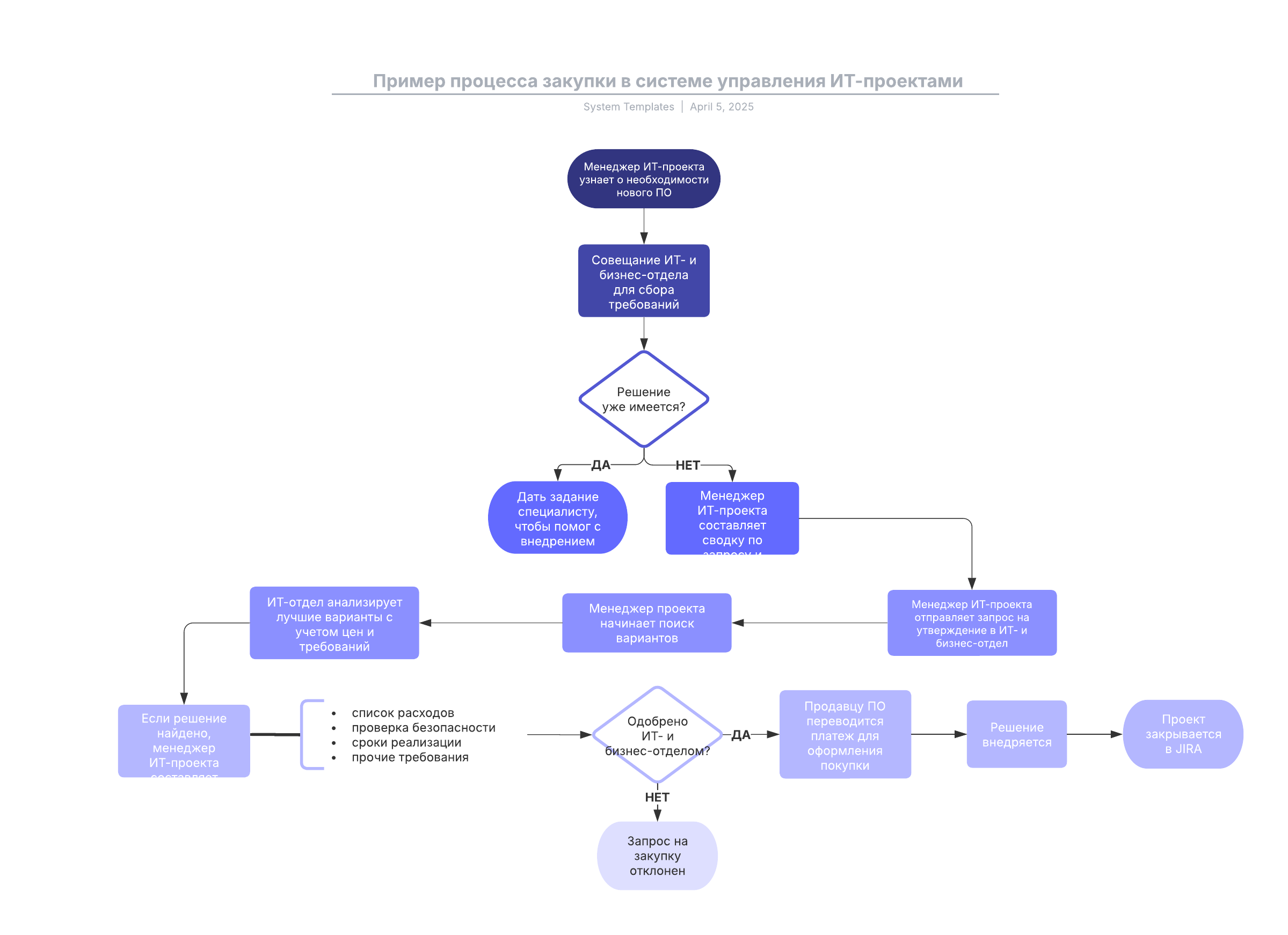 Откройте шаблон, чтобы подробнее рассмотреть наш пример и настроить его под собственный проект закупки для ИТ-отдела.