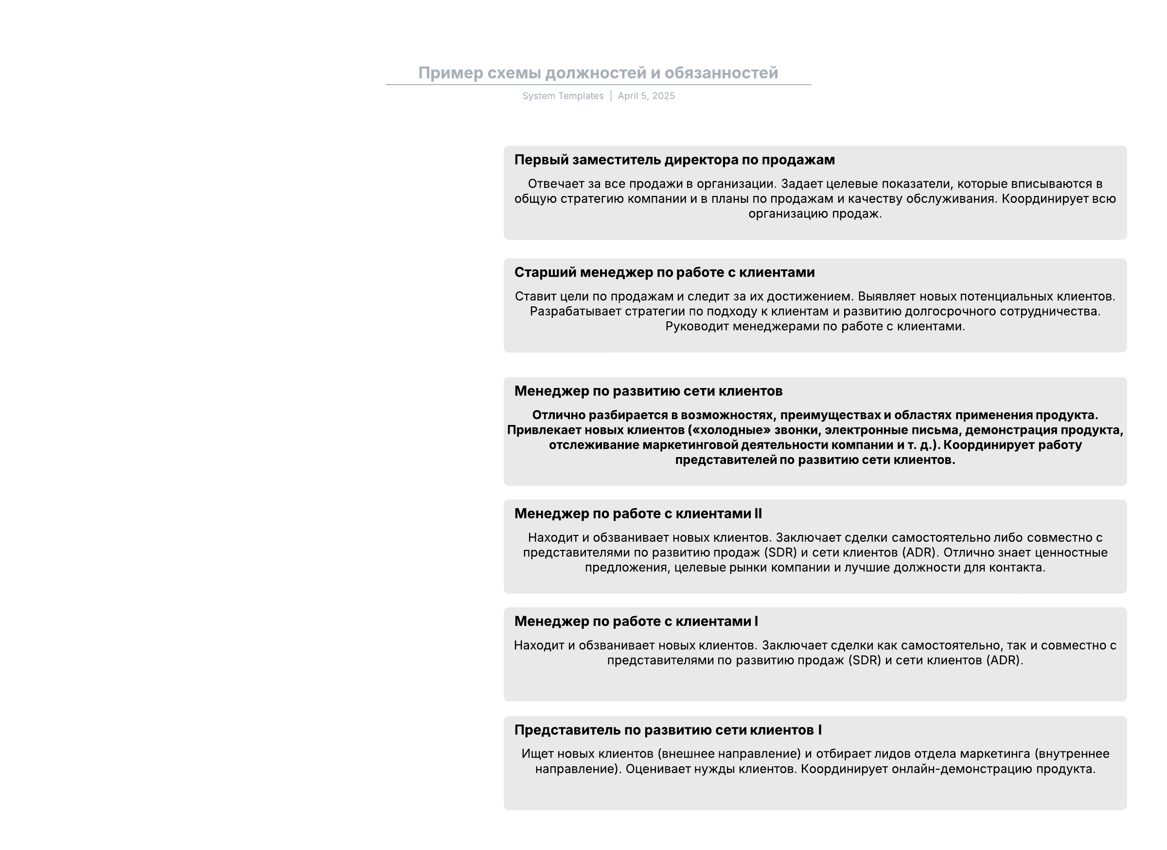 Пример схемы должностей и обязанностей