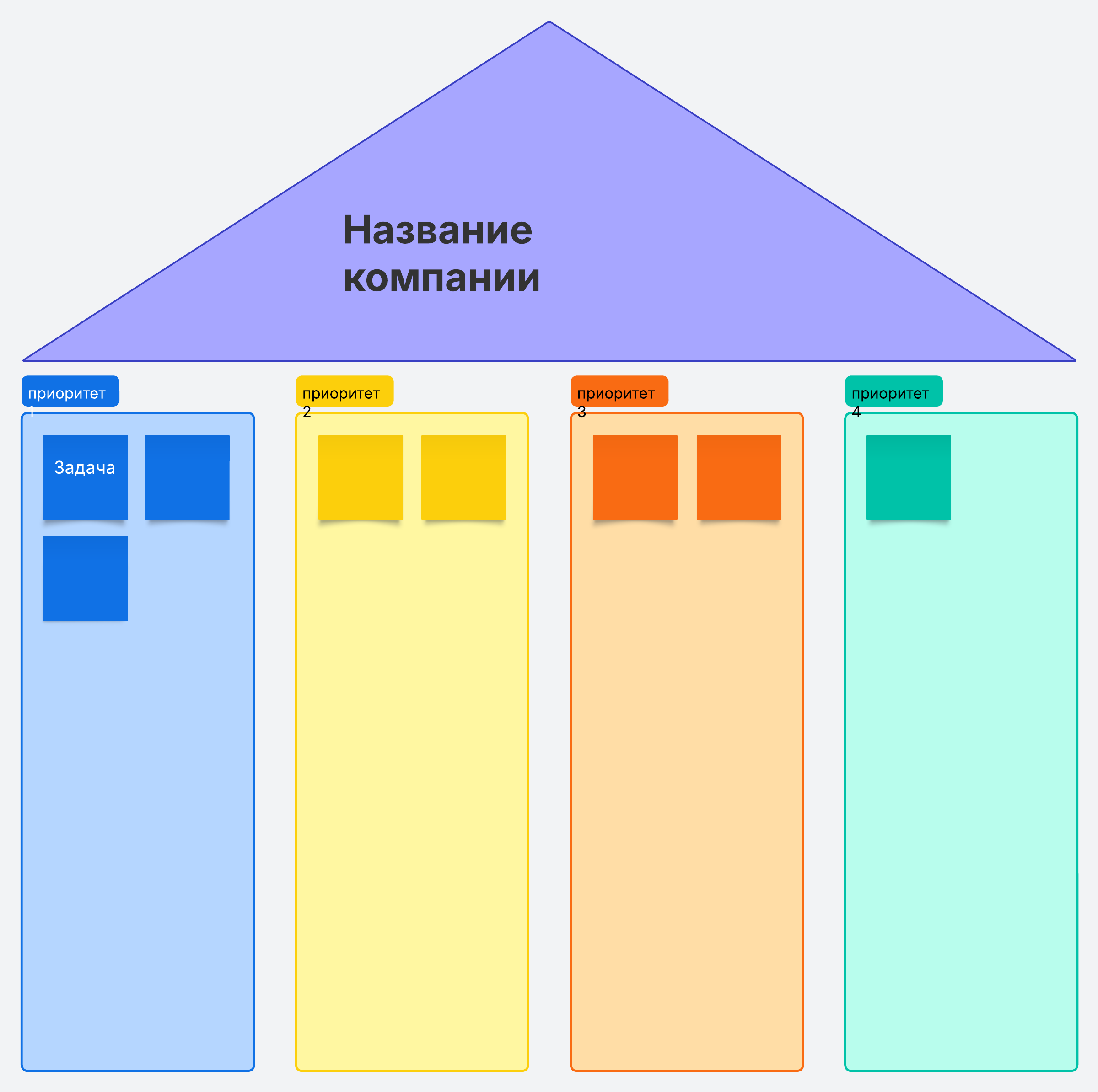 Продемонстрируйте, как решение повседневных задач способствует достижению приоритетных целей вашей компании, с помощью этого шаблона столпов компании.