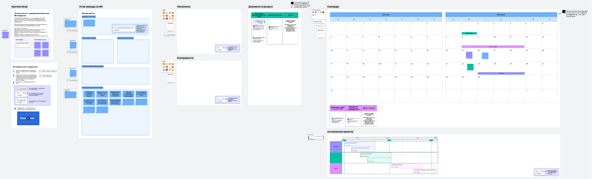 В центральном хабе для главных заинтересованных сторон, вовлеченных в работу с ИИ-инициативами, доступна как информация о команде, так и документы с совещаний и материалы для отслеживания прогресса.