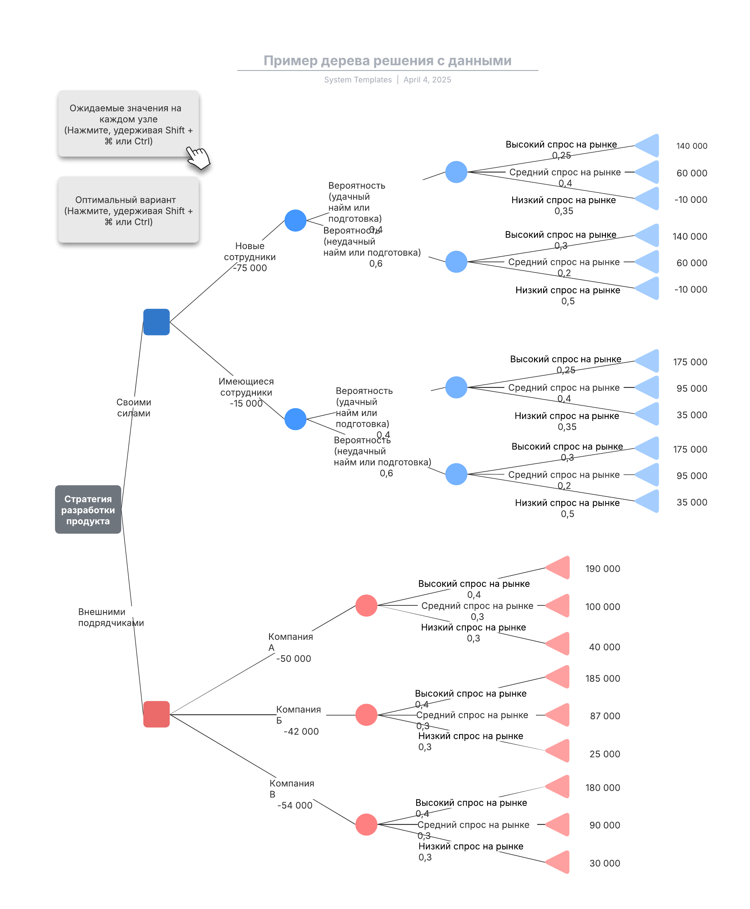 Откройте шаблон, чтобы подробнее рассмотреть наш пример дерева решений и настроить его под свой проект.