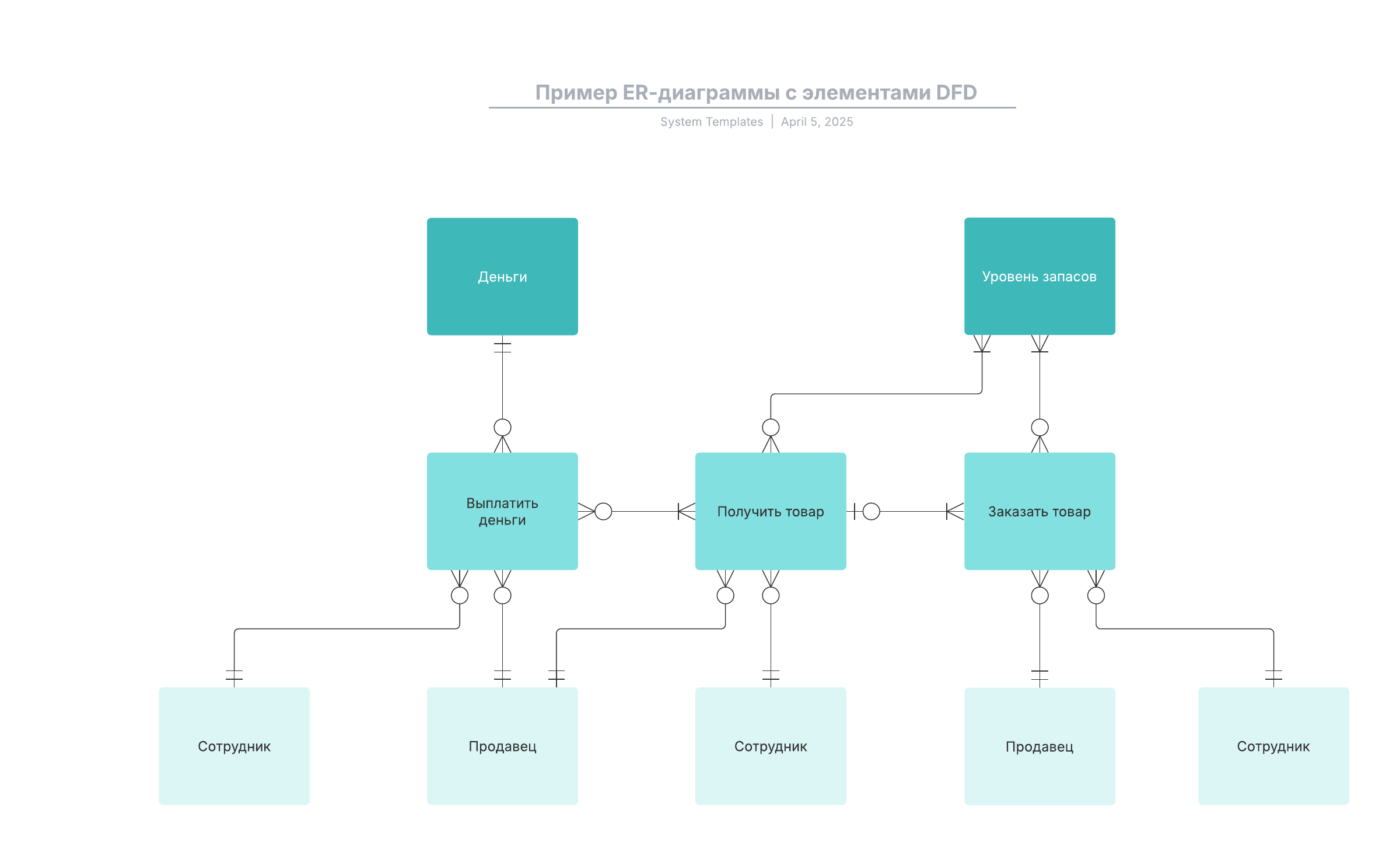 Чтобы подстроить эту ER-диаграмму с элементами DFD под свой проект, просто откройте шаблон и внесите необходимую информацию.