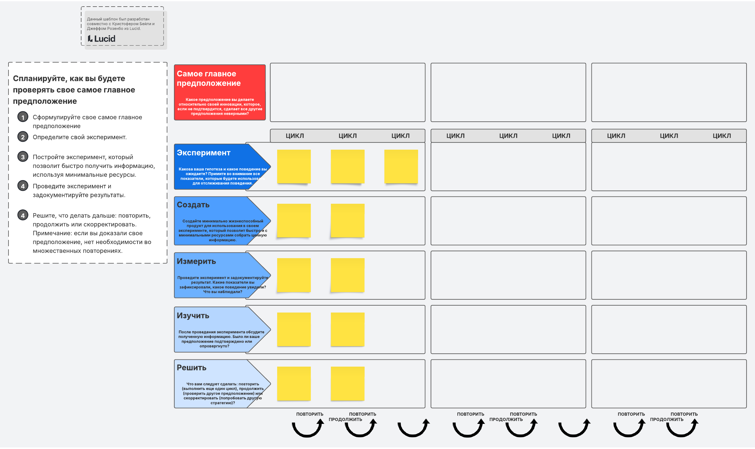 Проверьте и подтвердите свое самое главное предположение с помощью этой карты эксперимента.