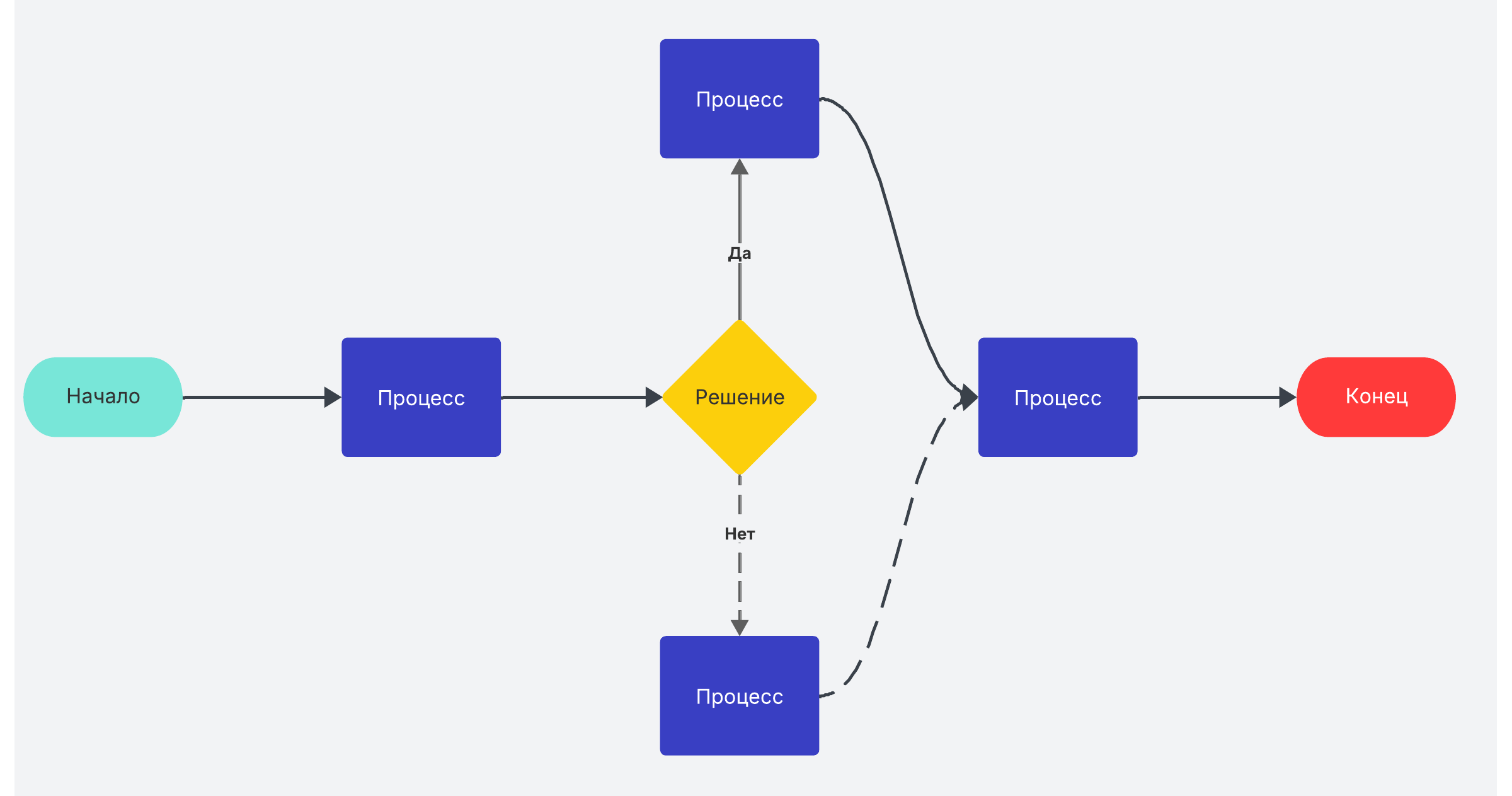 - Ромбы: символизируют решение, которое необходимо принять, чтобы действовать дальше.