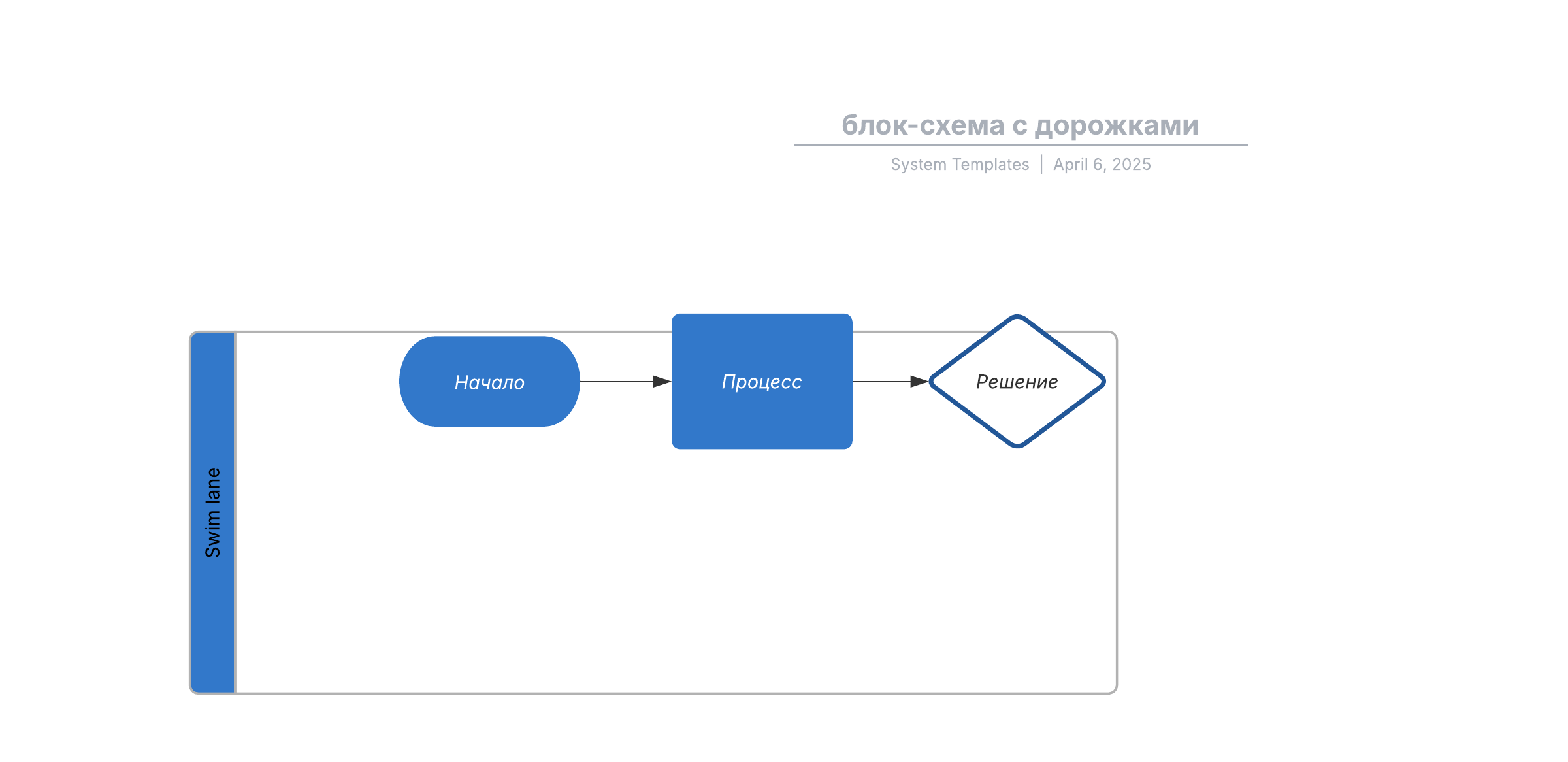 Чтобы подстроить эту простую блок-схему с плавательными дорожками под свой проект, достаточно открыть наш шаблон и внести необходимую информацию.