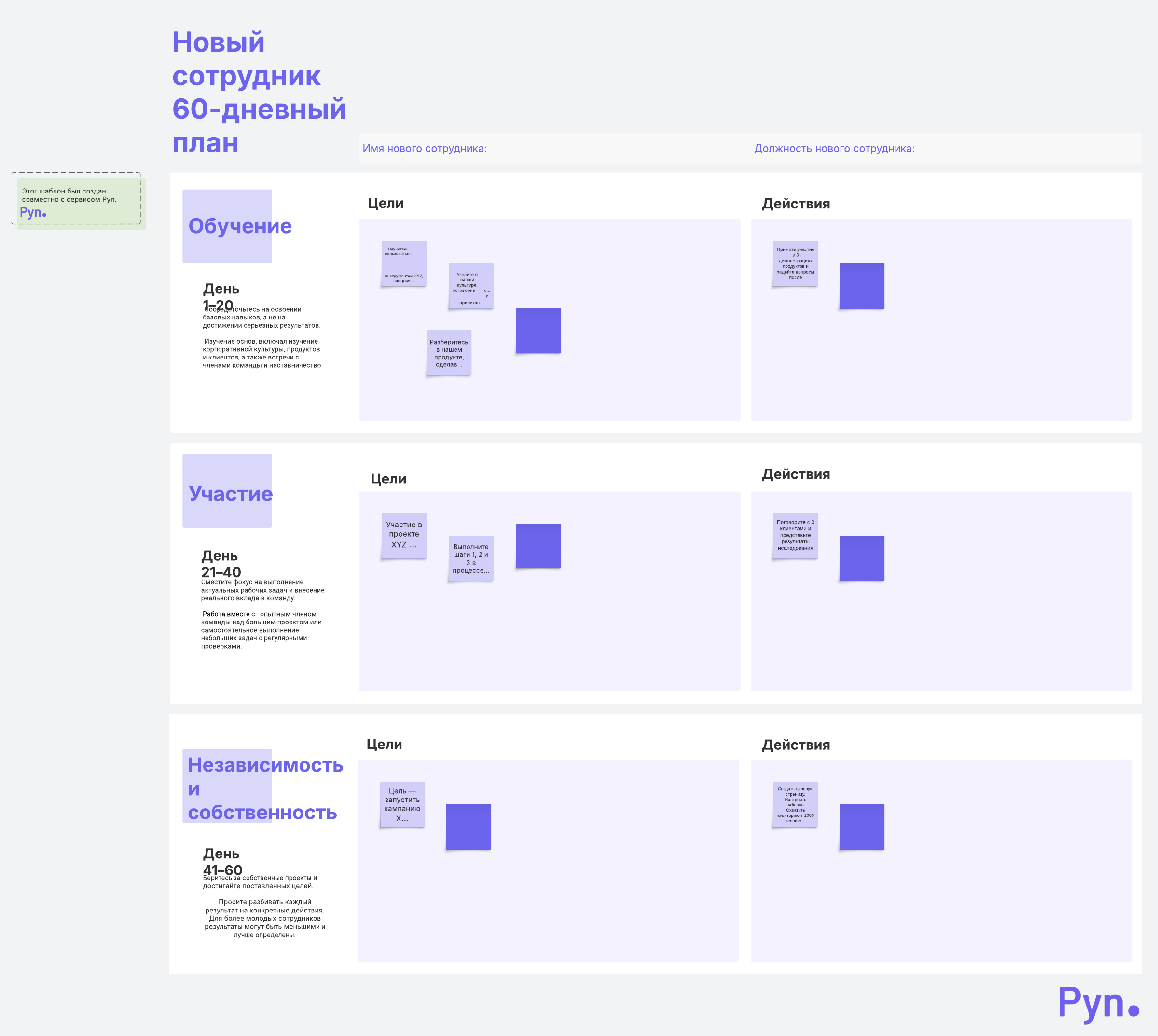 С 60-дневным планом адаптации Pyn помогите своим новым сотрудникам пройти путь от «изучения» до «владения».