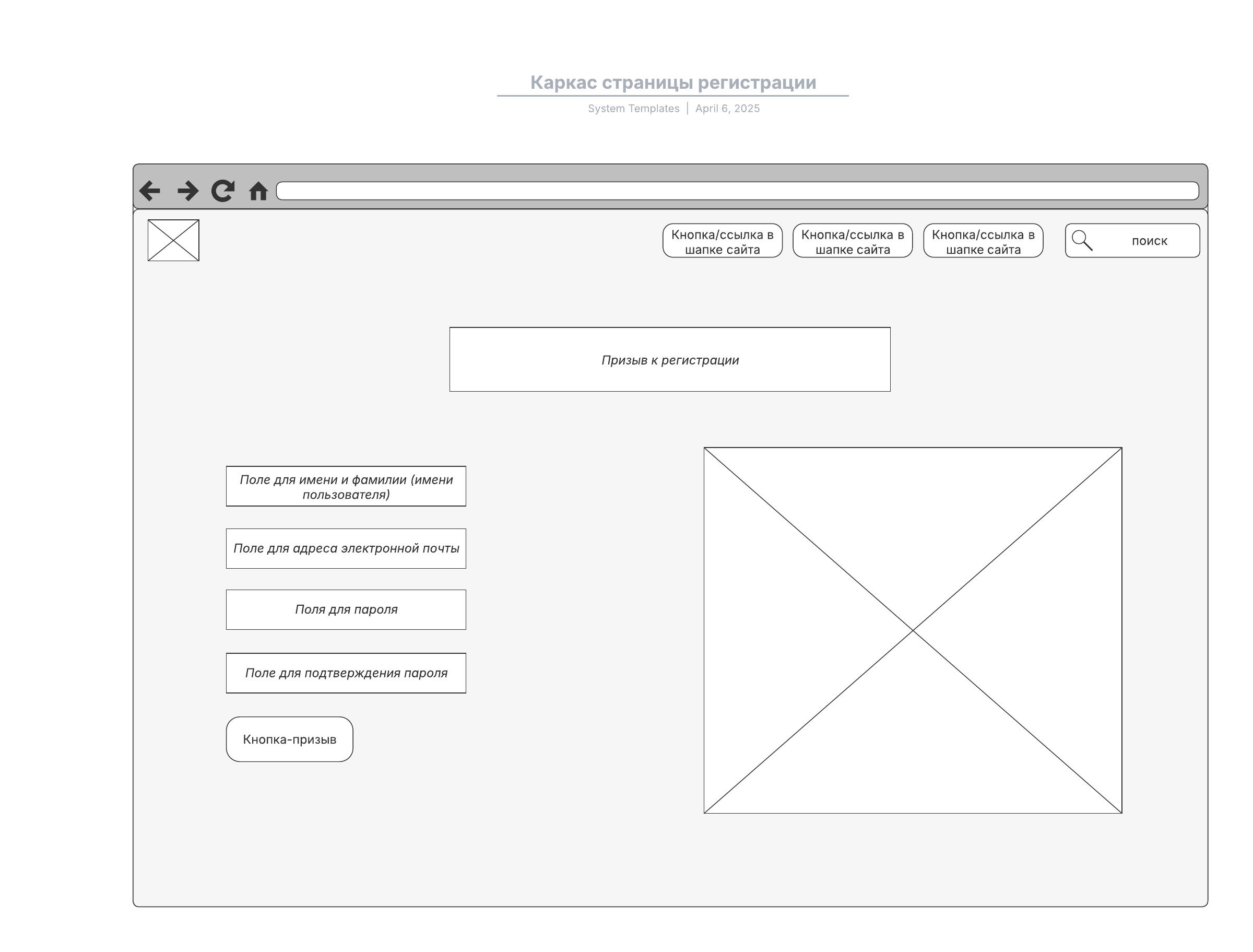 Каркас страницы регистрации