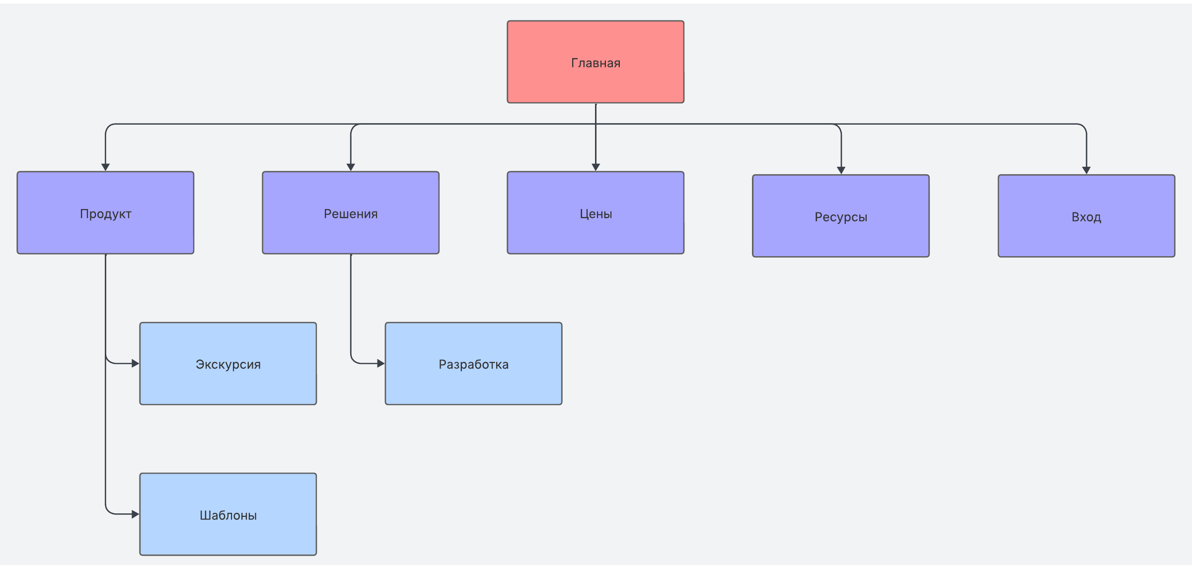 Проведите мозговой штурм и спланируйте общую структуру сайта с помощью нашего шаблона. Пригласите к работе всю команду, и блестящие идеи не заставят себя долго ждать!