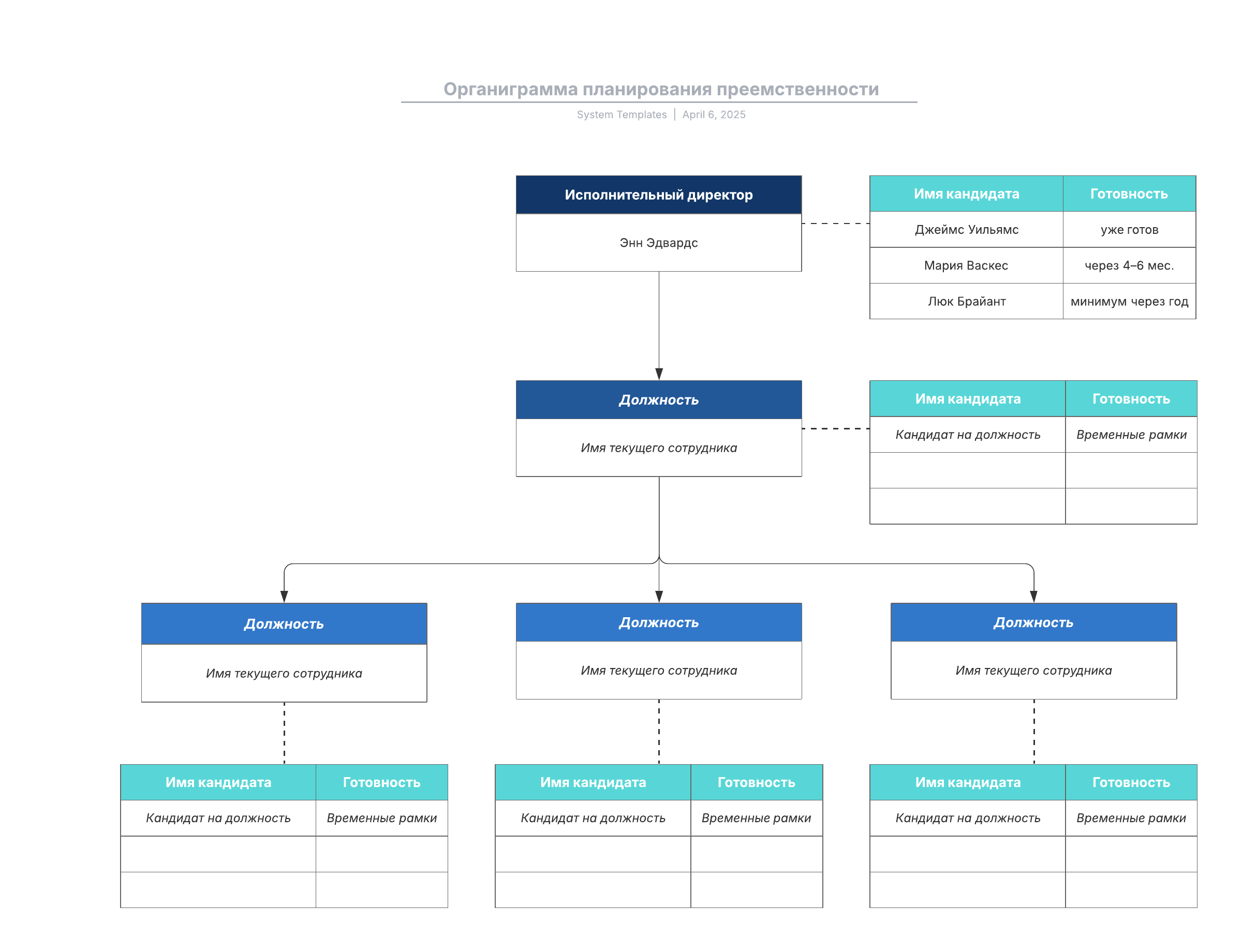 Этот шаблон органиграммы планирования преемственности поможет вам: