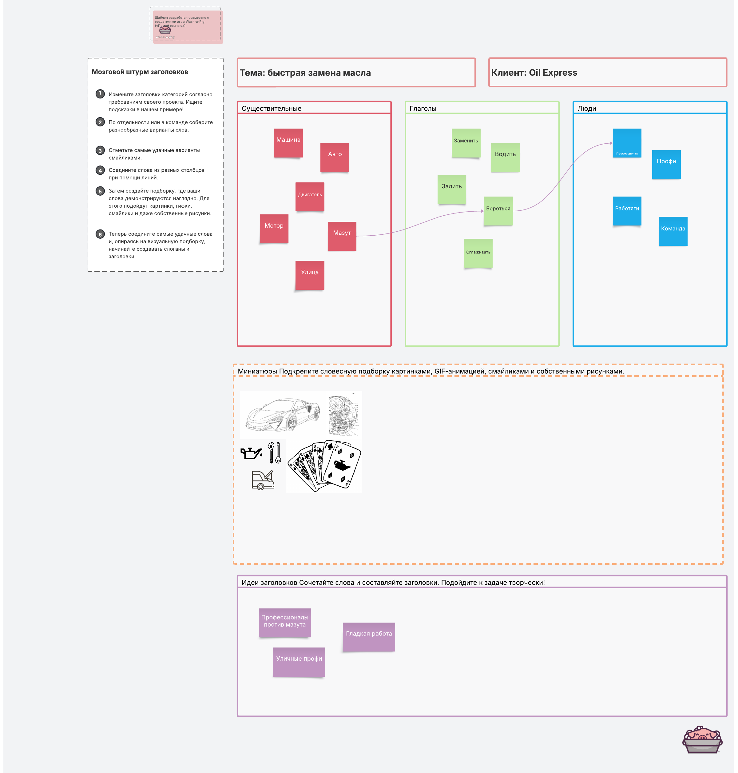 Собирайте идеи для слоганов и заголовков через цикл простых шагов!