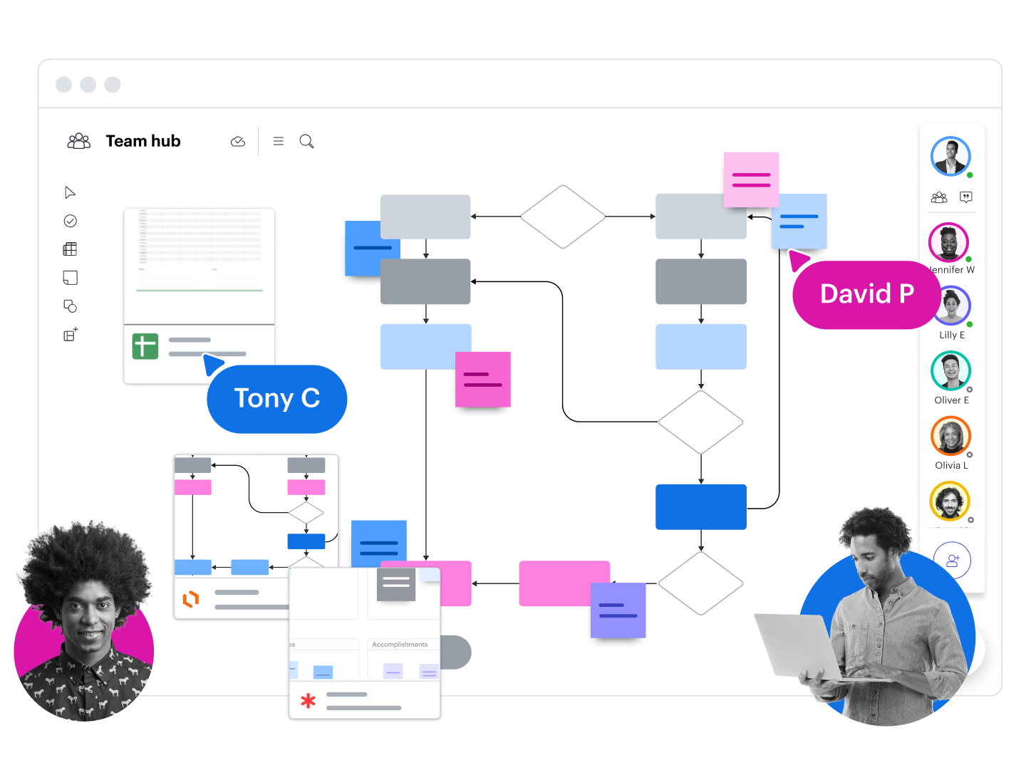 Standardise hybrid collaboration with virtual whiteboarding, intelligent diagramming and cloud visualisation in one secure platform.