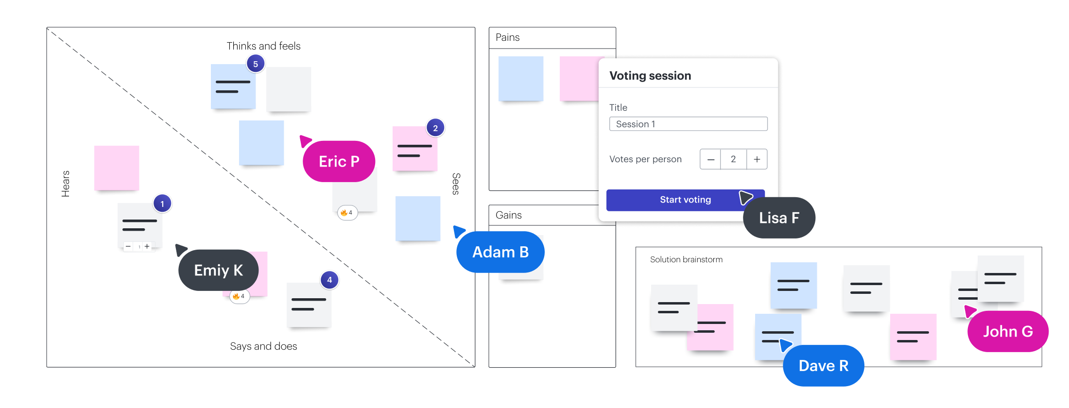 Gather insights, identify market opportunities, and evaluate customer feedback in one place with sticky notes, voting, and comments that involve every stakeholder.