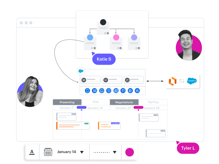 Selling is inherently collaborative, and Lucid helps sales reps coordinate with their customer success, solutions engineering, and marketing counterparts to get deals across the finish line.