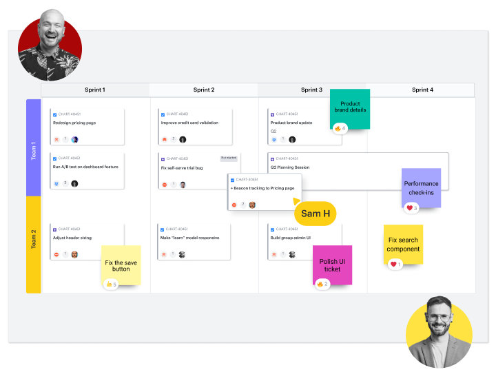 Håll alla uppdaterade under standups, sprintplaneringar och retrospektiv. Använd funktioner som: