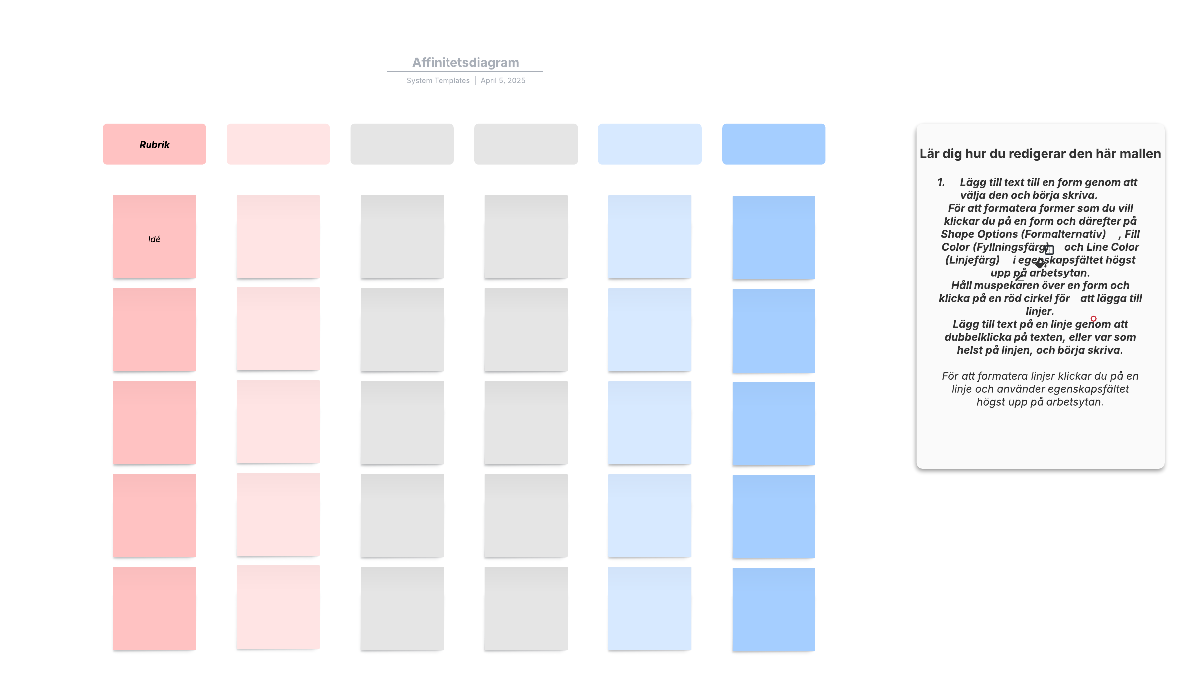 Öppna mallen och lägg till innehåll för att anpassa affinitetsdiagrammet efter dina behov.