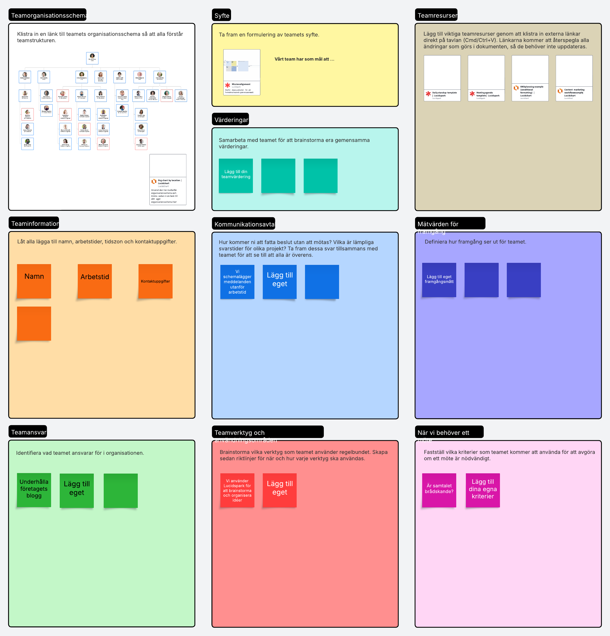 Använd teamkontraktet för att ge teamet de verktyg, resurser och metoder som krävs för att samarbeta asynkront.