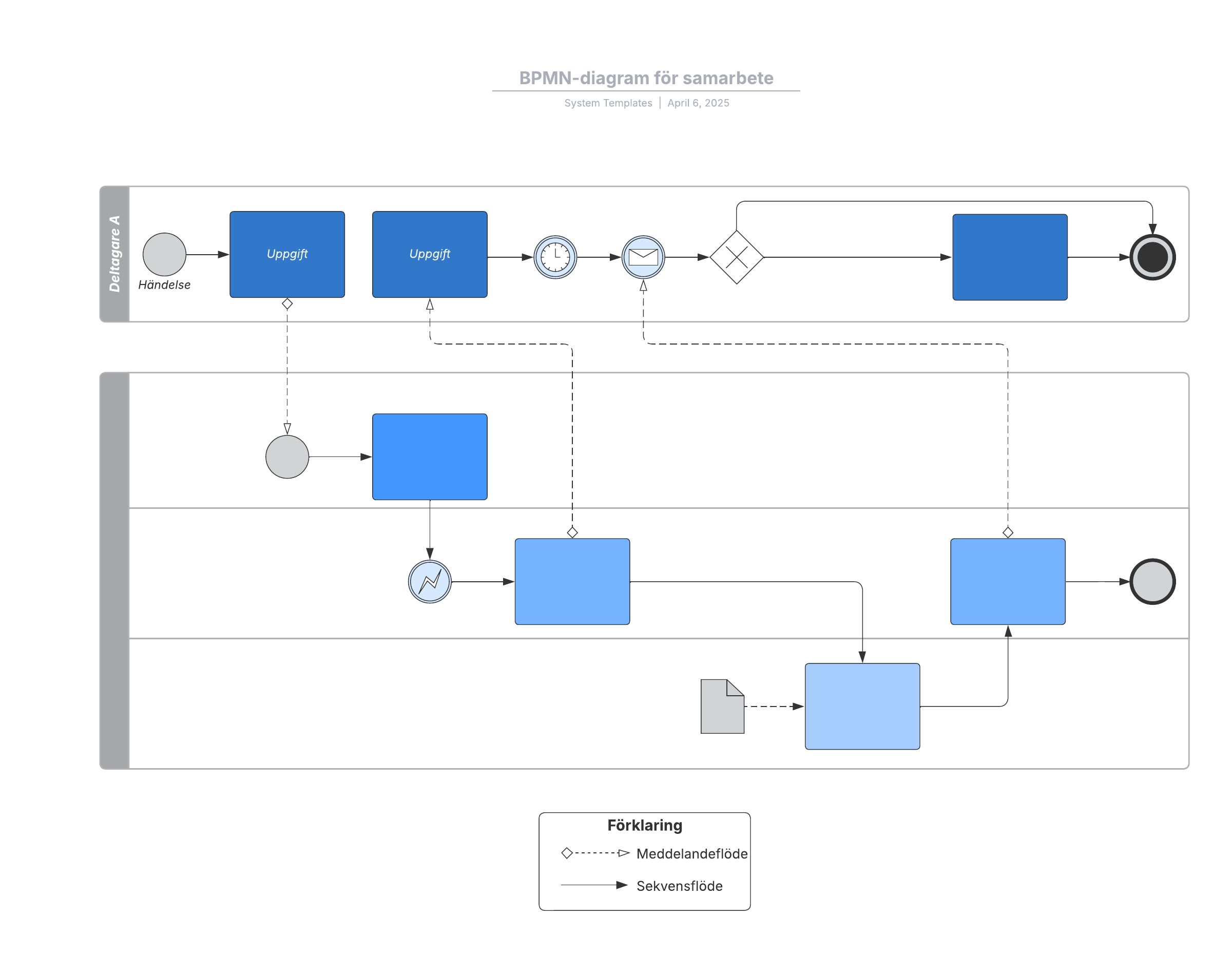 Den här mallen för BPMN-diagram för samarbete kan hjälpa dig att: