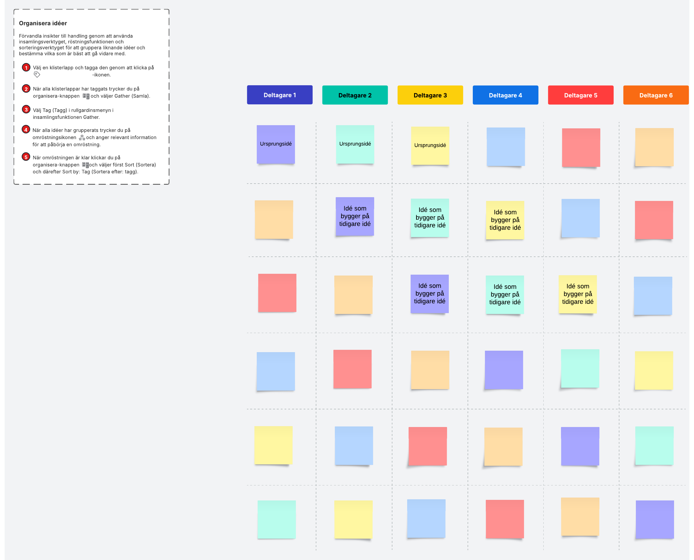 Testa BrainWriting för att få fler idéer under gruppens brainstormar. Lägg till dina idéer och dela dem med andra i teamet så att de kan lägga till sina tankar.