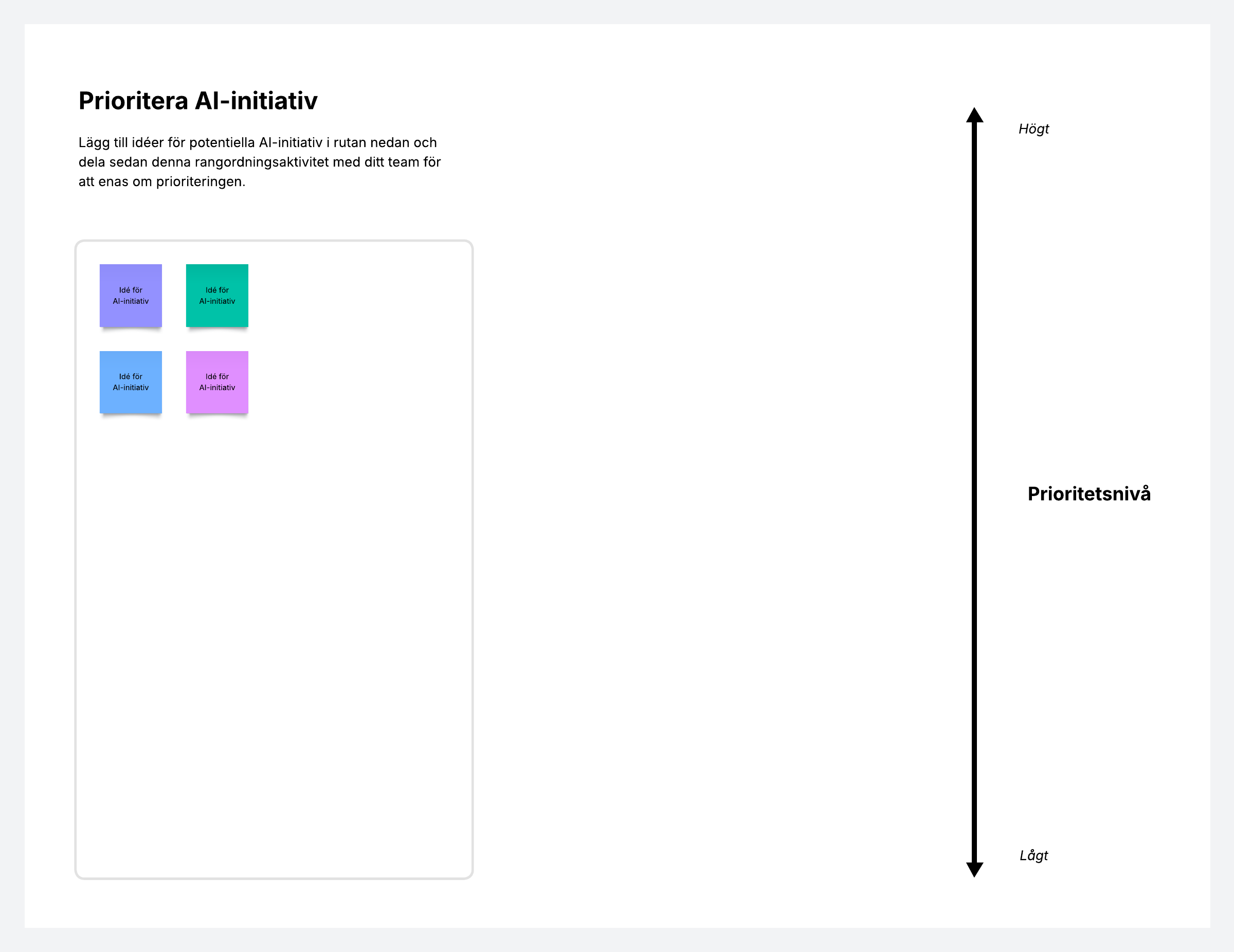 Rangordna idéer för AI-initiativ på en prioritetsskala från hög till låg.