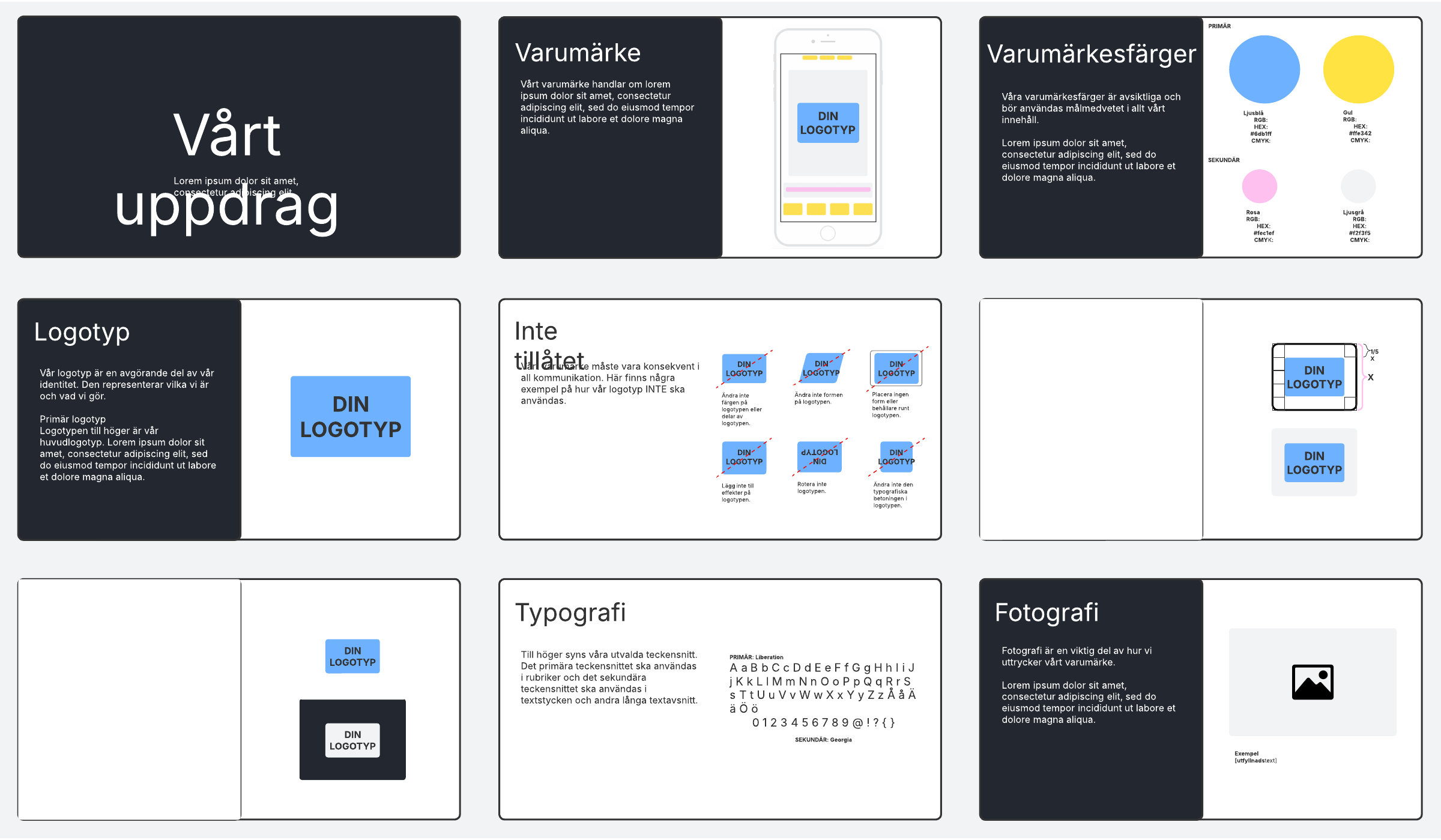 Håll det kreativa innehållet konsekvent och professionellt med den här mallen för varumärkesriktlinjer.