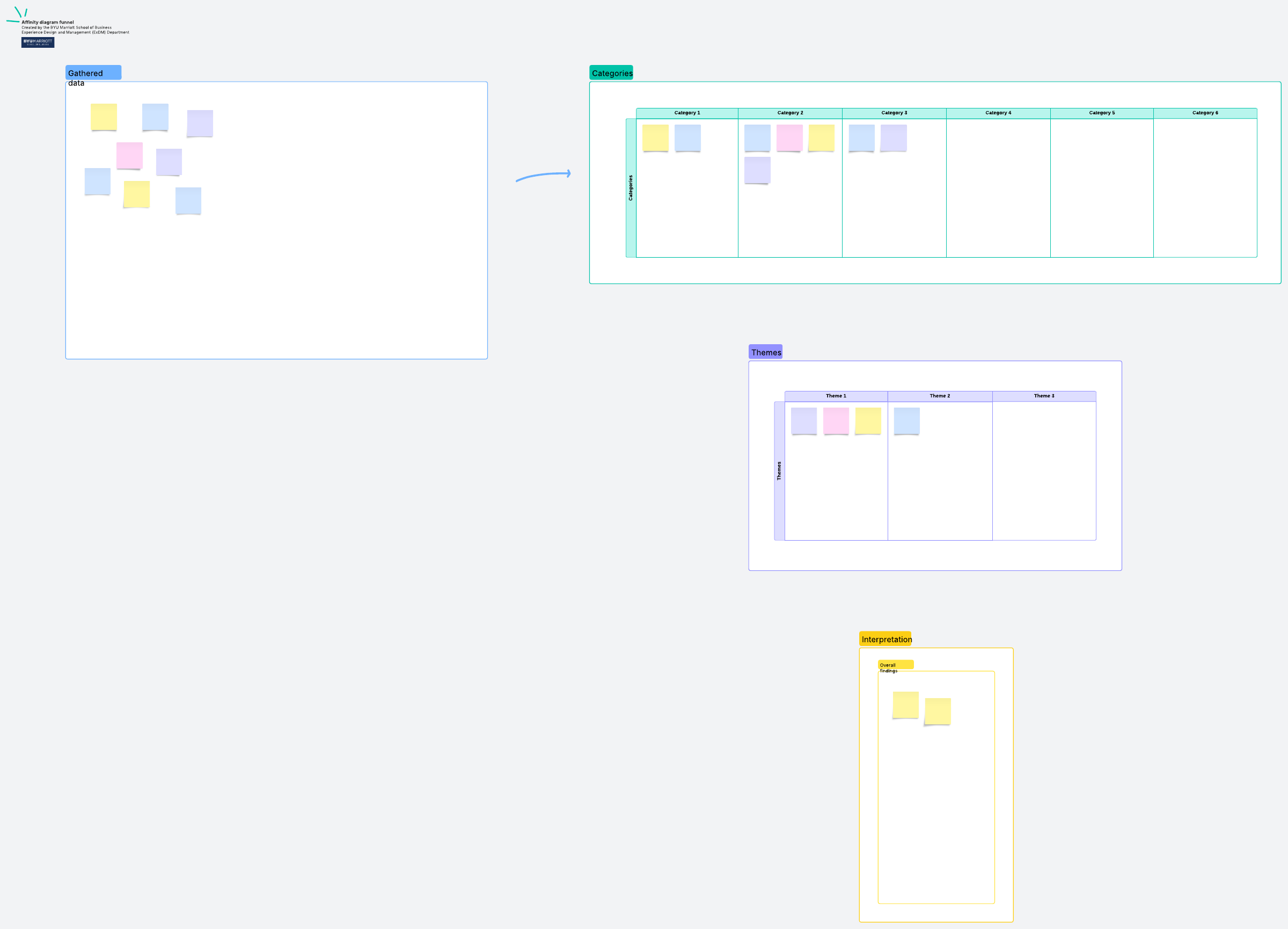Sort ideas by theme. Identify broader themes that you see across everyone’s contributions and label the second row of boxes. Copy the sticky notes into the appropriate box to categorize them.
