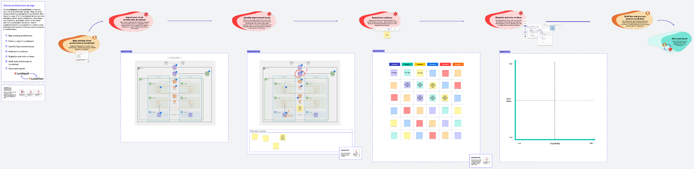 Use the Lucid Suite to improve your cloud architecture design. Import a cloud architecture diagram from Lucidchart. Then use Lucidspark to identify problems and brainstorm ideas for improvement.