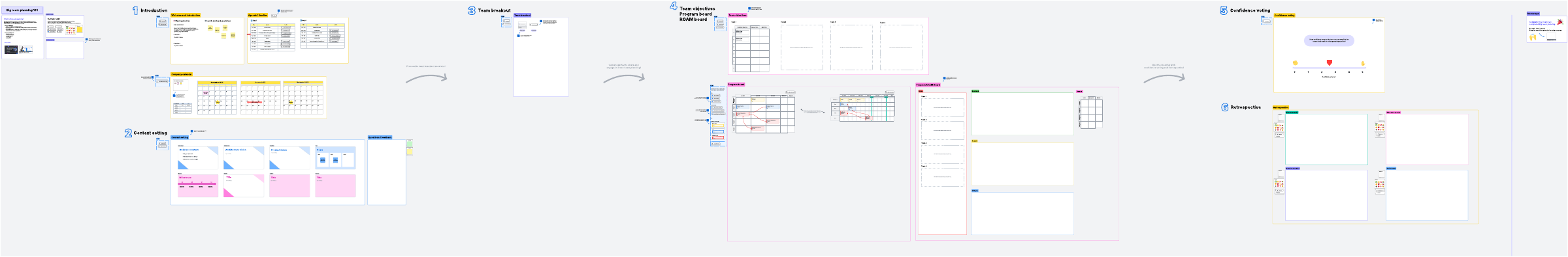 Accelerate your big room planning with this Enterprise template designed to reduce set-up time for your board. It leverages Lucid's intelligent features, such as pre-configured breakout boards and integrations, to optimize planning sessions.