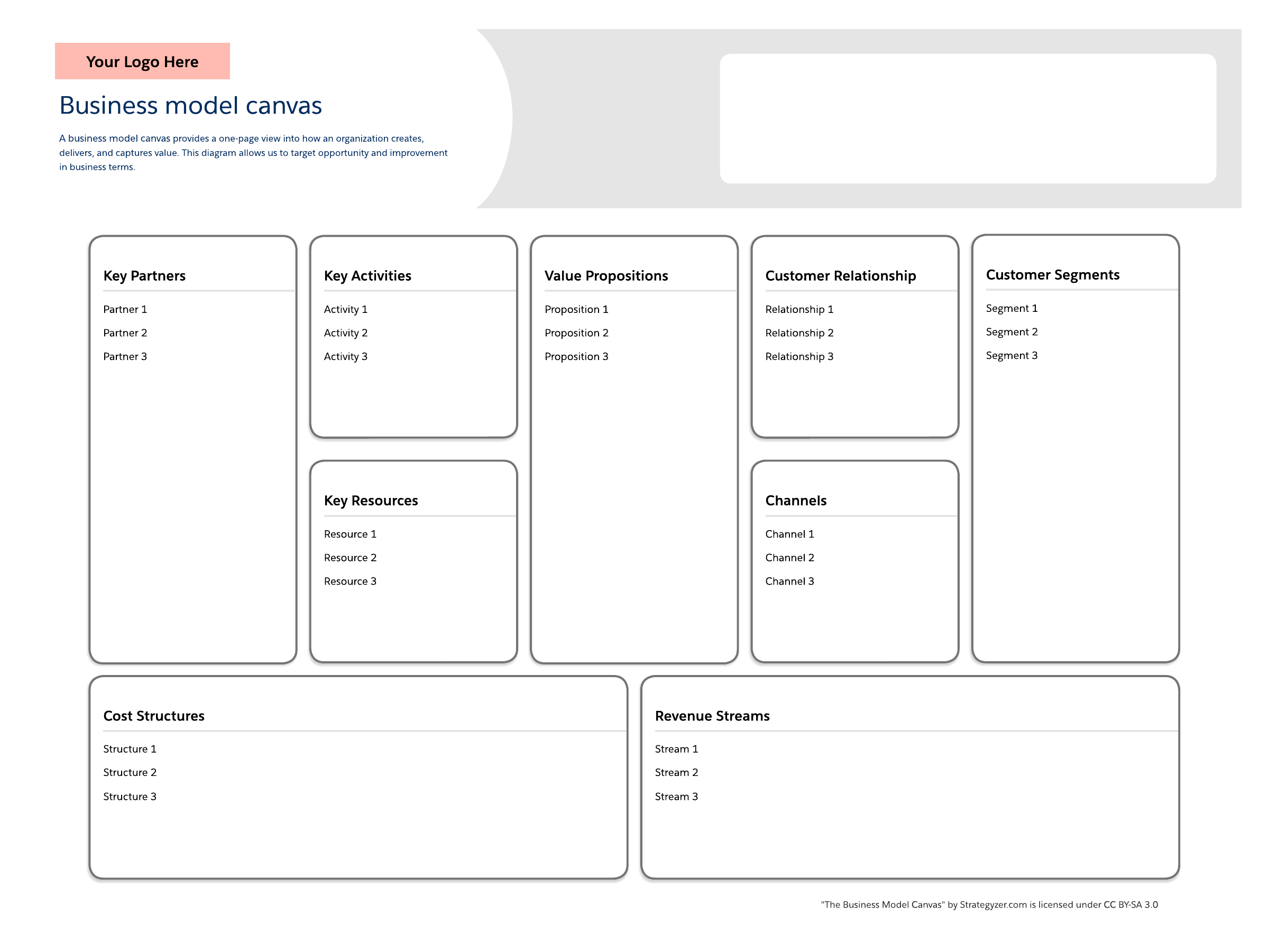 Open this template and add content to customize this Business model canvas to your use case.