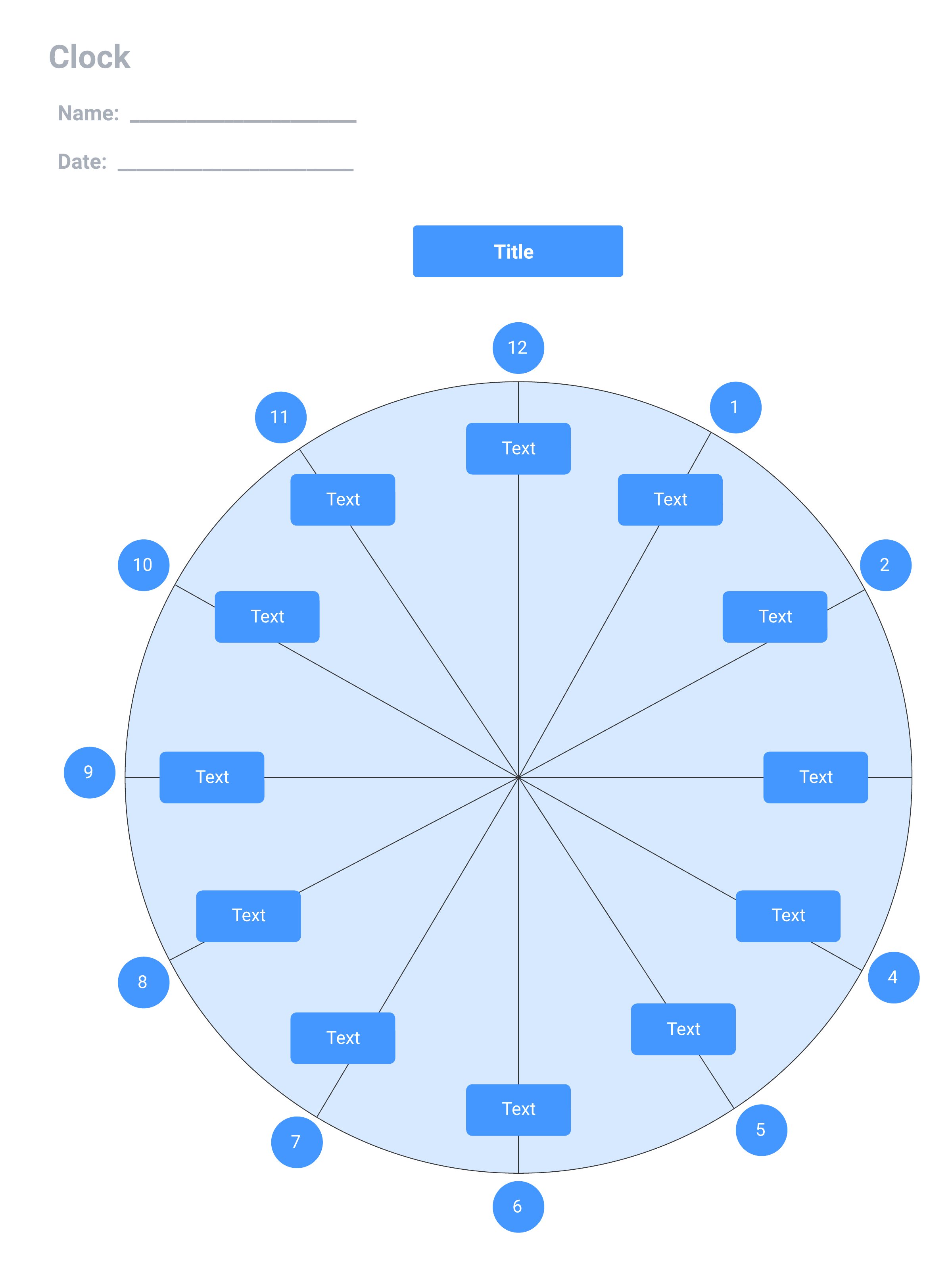 Open this template and add content to customize this clock diagram to your use case. Use the black-and-white version of this template for cost-effective printing.