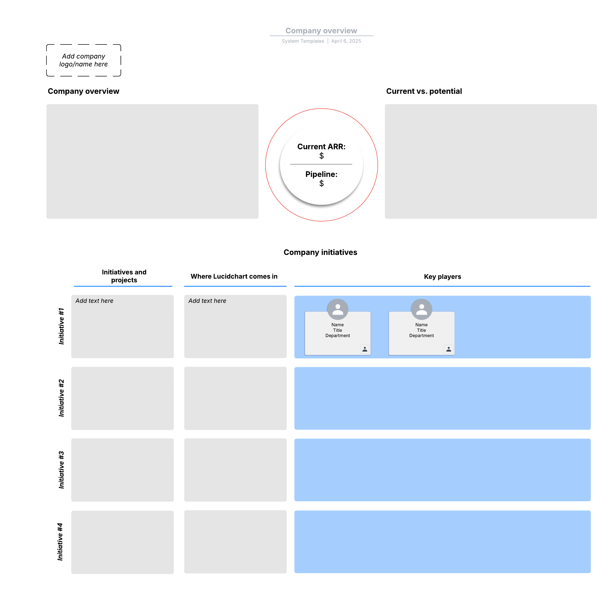 Open this template and add content to customize this company overview diagram to your use case.