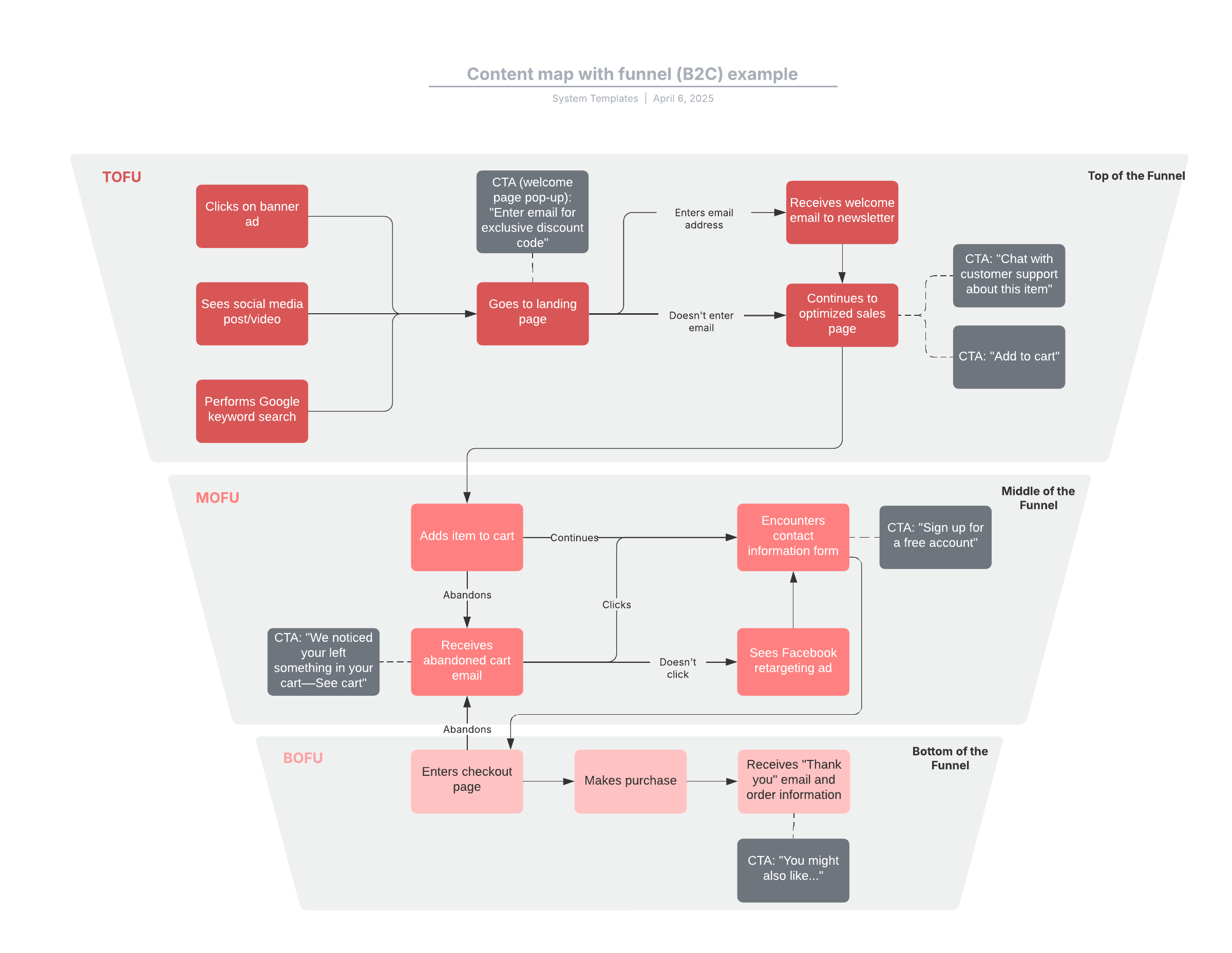 Open this template to view a detailed example of a content map that you can customize to your use case.
