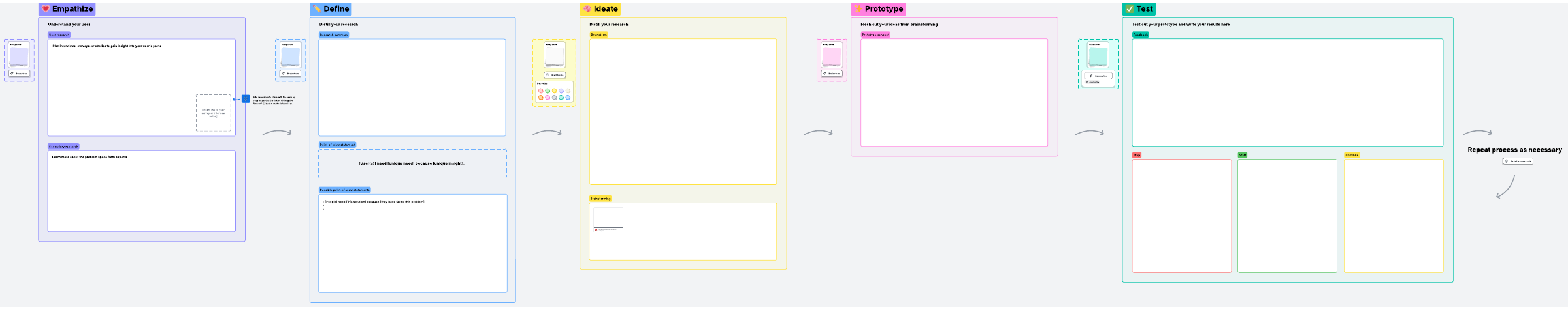 Solve a unique problem for your target market with this design thinking process. Follow your linear process, and alter it if needed to better fit your user's needs.