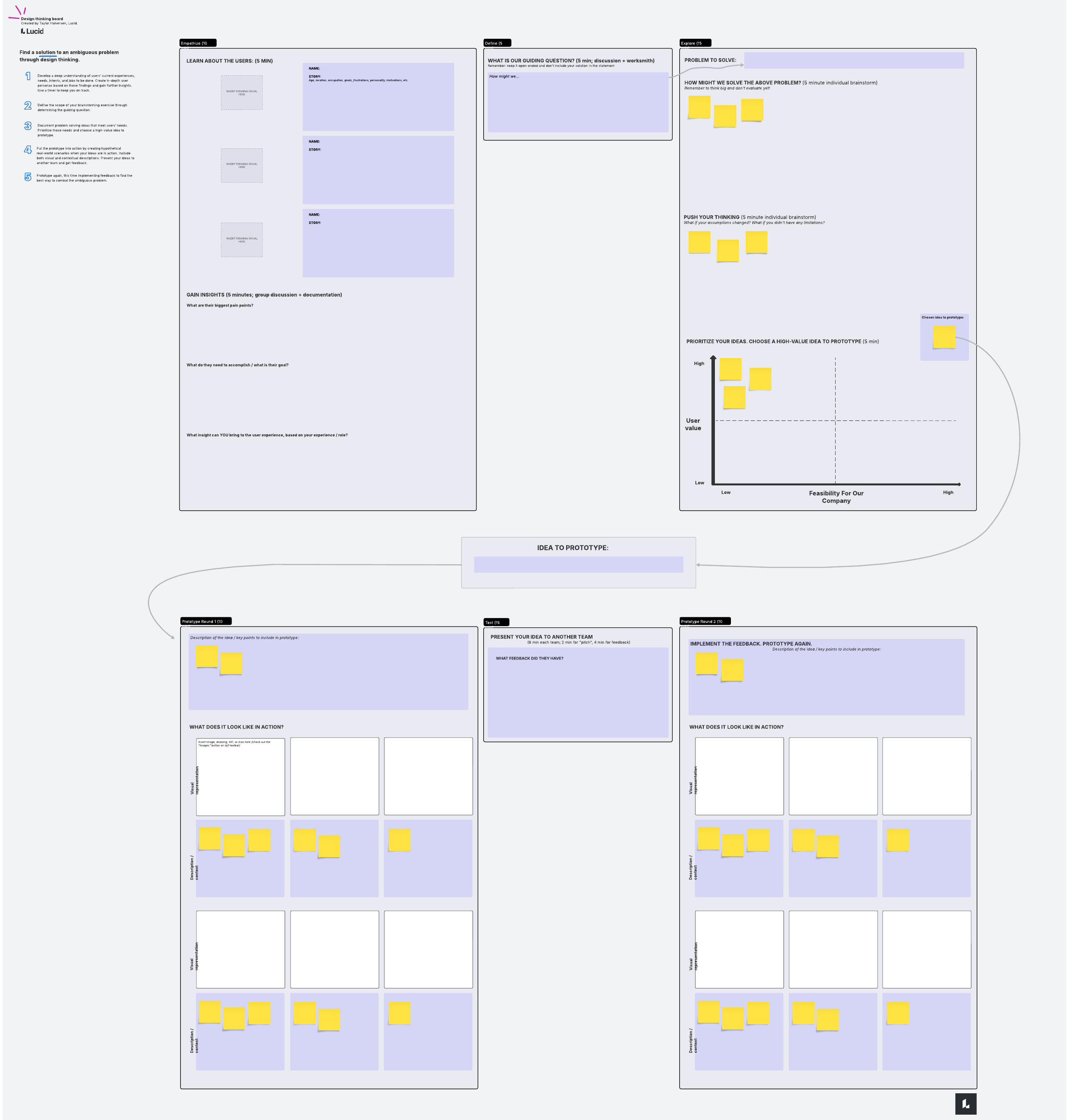 This "Design Thinking" exercise enables you to solve ambiguous problems by understanding your users, identifying issues, and then prototyping a solution through assessing hypothetical scenarios.
