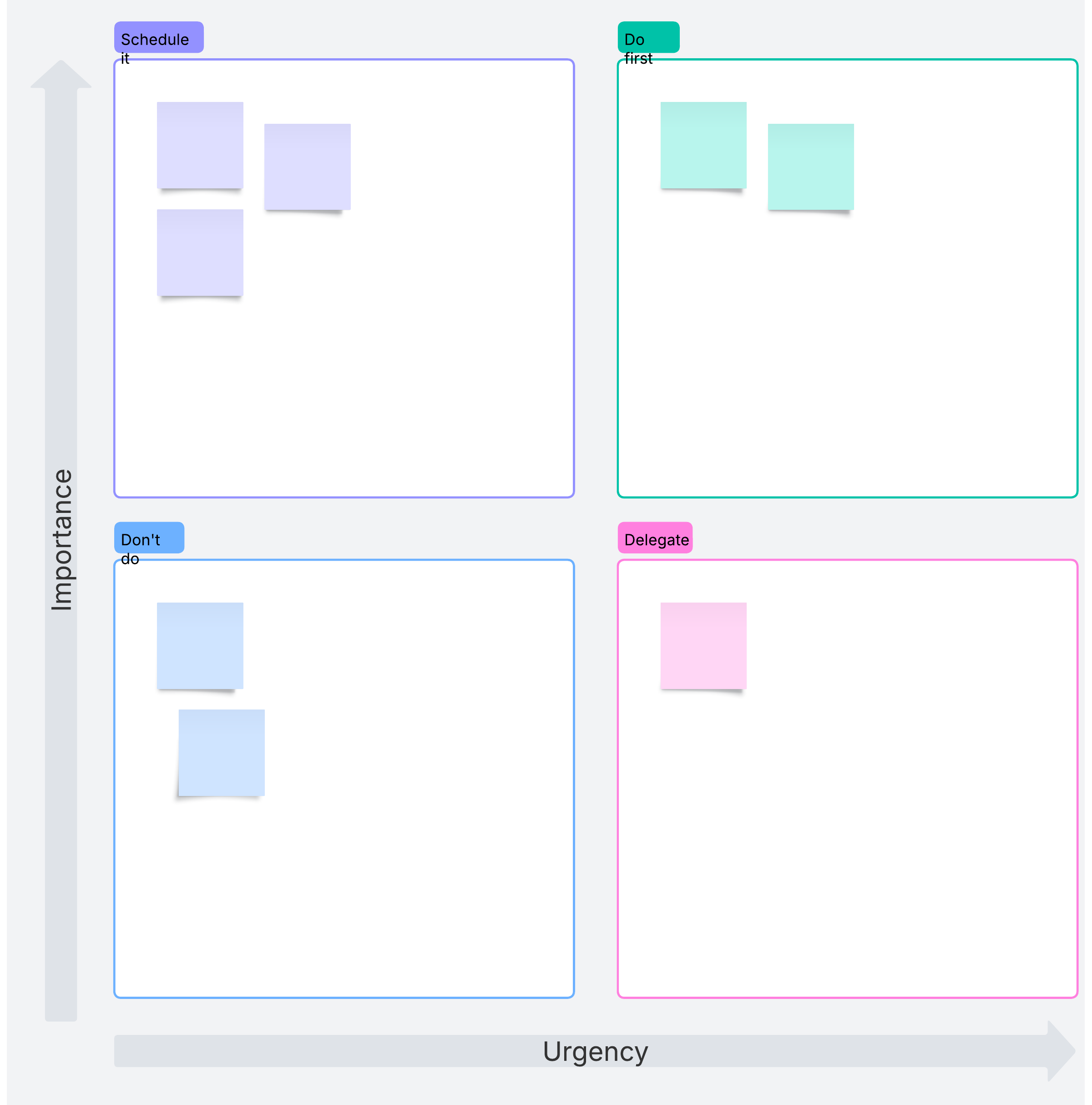 The Eisenhower matrix, aka the Urgent-Important matrix, is a four-quadrant matrix designed to sort tasks based on their importance. Tasks can range from most urgent and important to tasks you can delegate or not do at all.