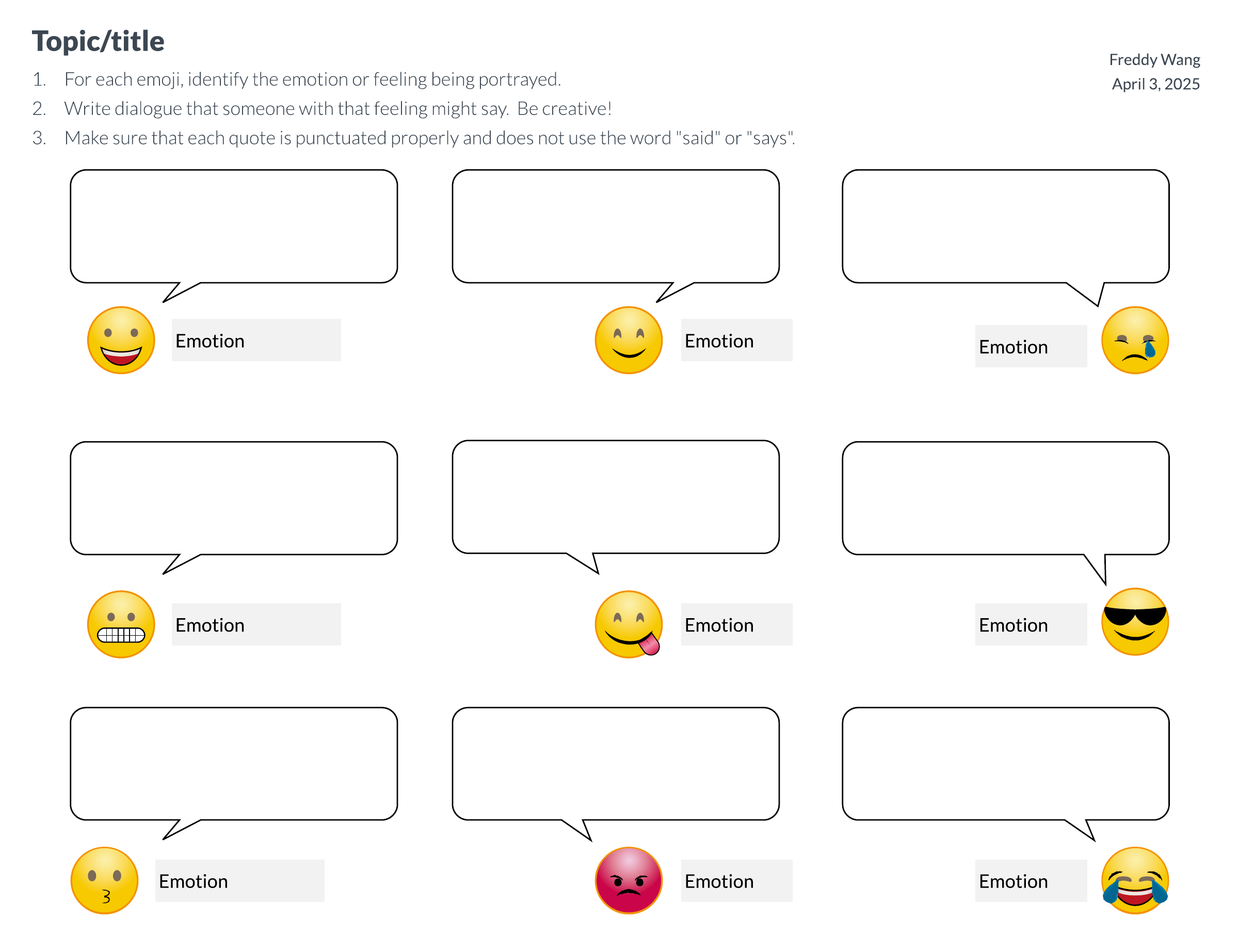 This Emoji dialogue decoder template can help you: